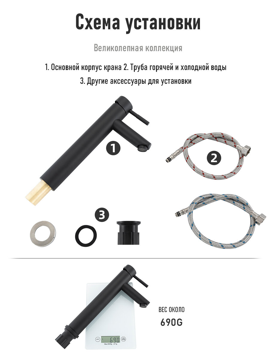 Смеситель для раковины из нержавеющей стали черный Frap YF10801-62 интересное: