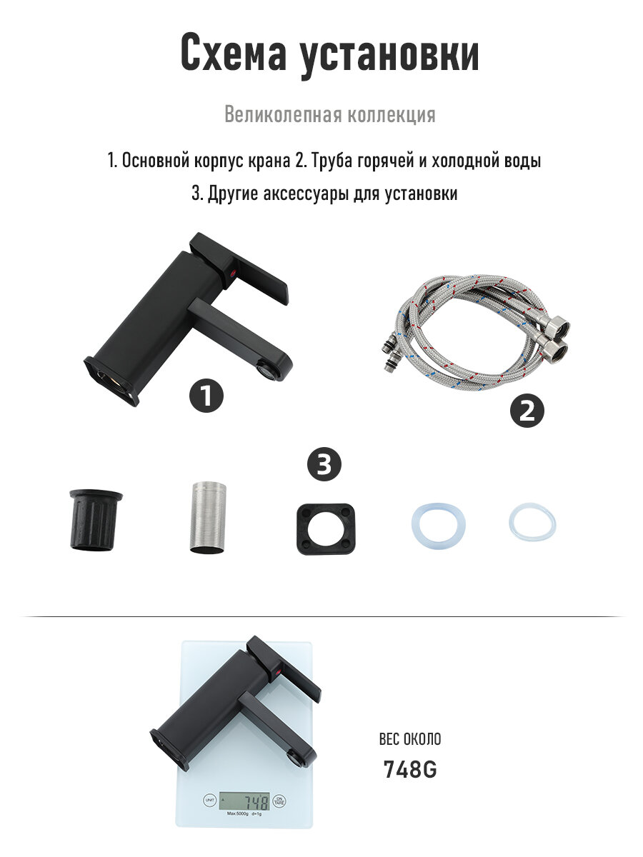 Смеситель для раковины из нержавеющей стали черный Frap YF10802-BK интересное: