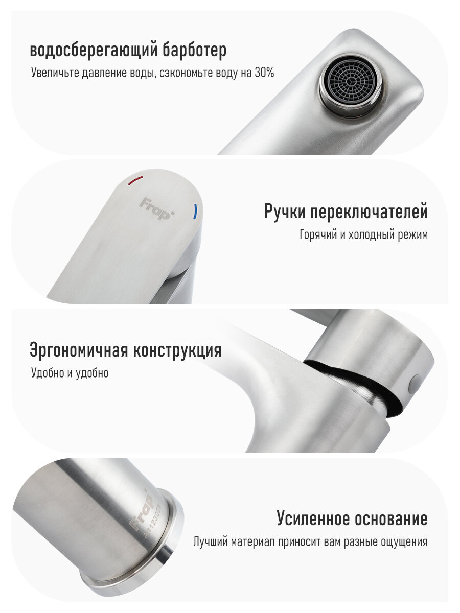 Смеситель для раковины Frap F10806-9 нержавеющая сталь оружейная сталь