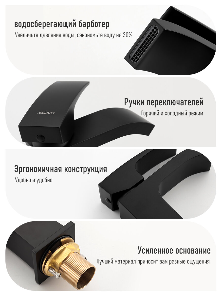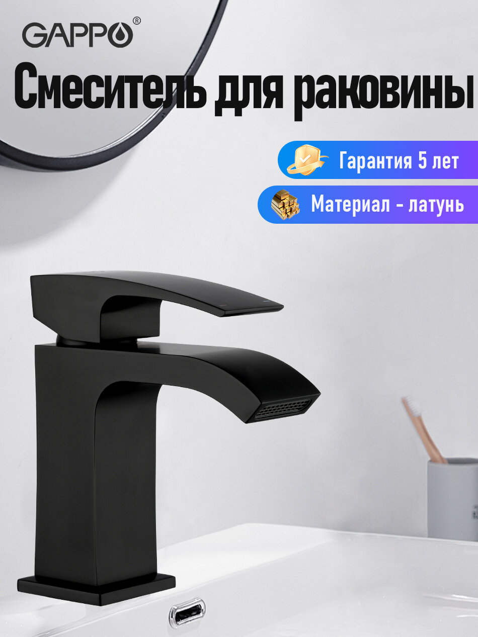 Смеситель для раковины (умывальника) Gappo G1007-6 черный латунь интересное: