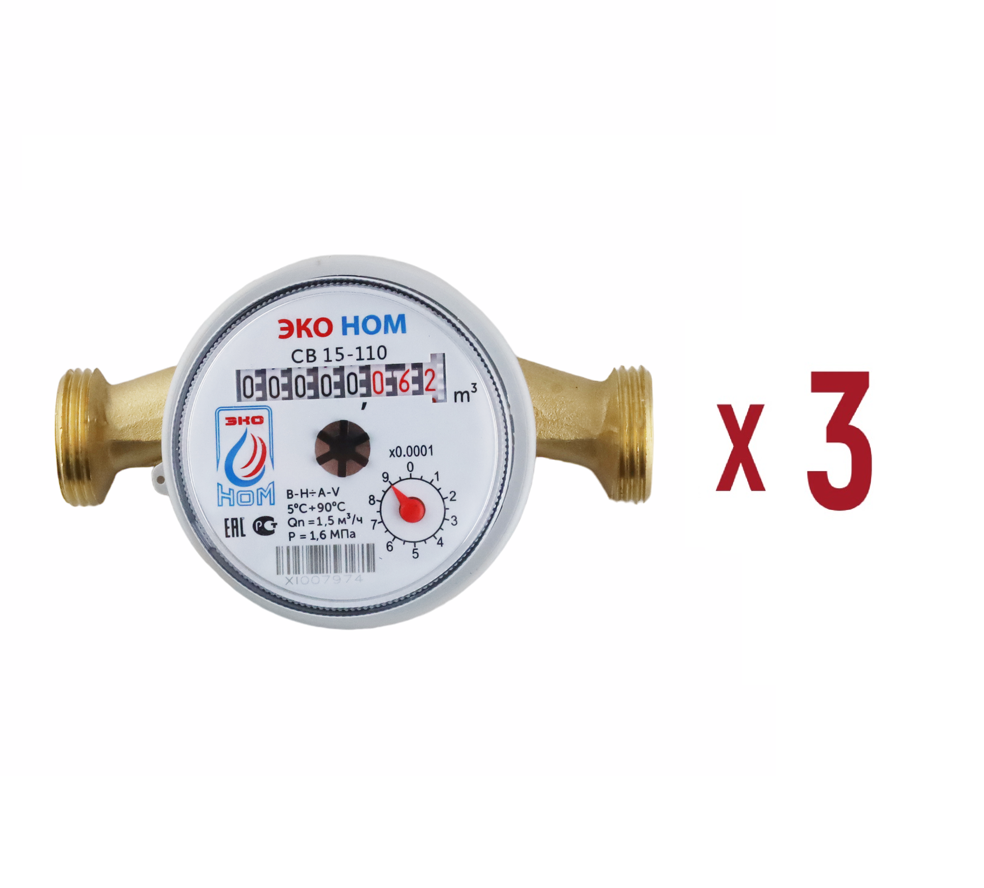 Купить Счетчик воды универсальный ЭКО НОМ-15-110 (Ду=15 мм, L=110 мм, без КМЧ) (3 шт.)