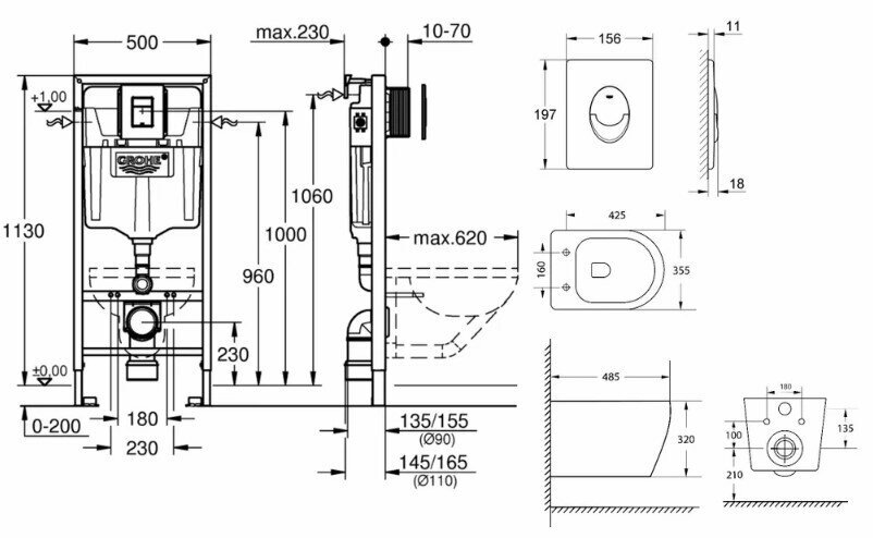 СохранитьИнсталляция с унитазом Helmken 35103001 комплект 5 в 1: унитаз подвесной безободковый, инсталляция Grohe, овальная кнопка хром, шумоизоляция, сиденье микролифт интересное: