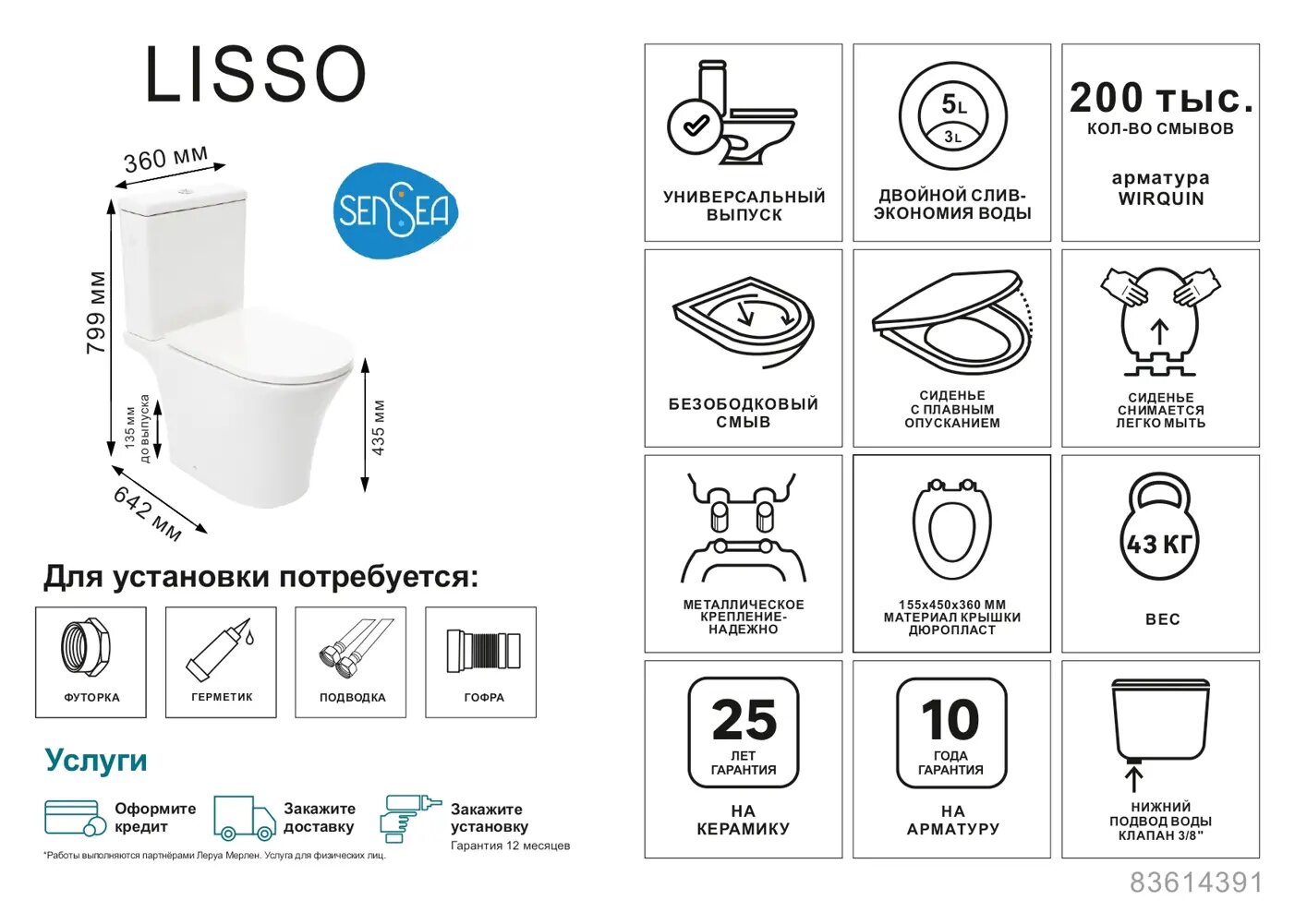 Унитаз-компакт Sensea Lisso универсальный выпуск двойной слив интересное:
