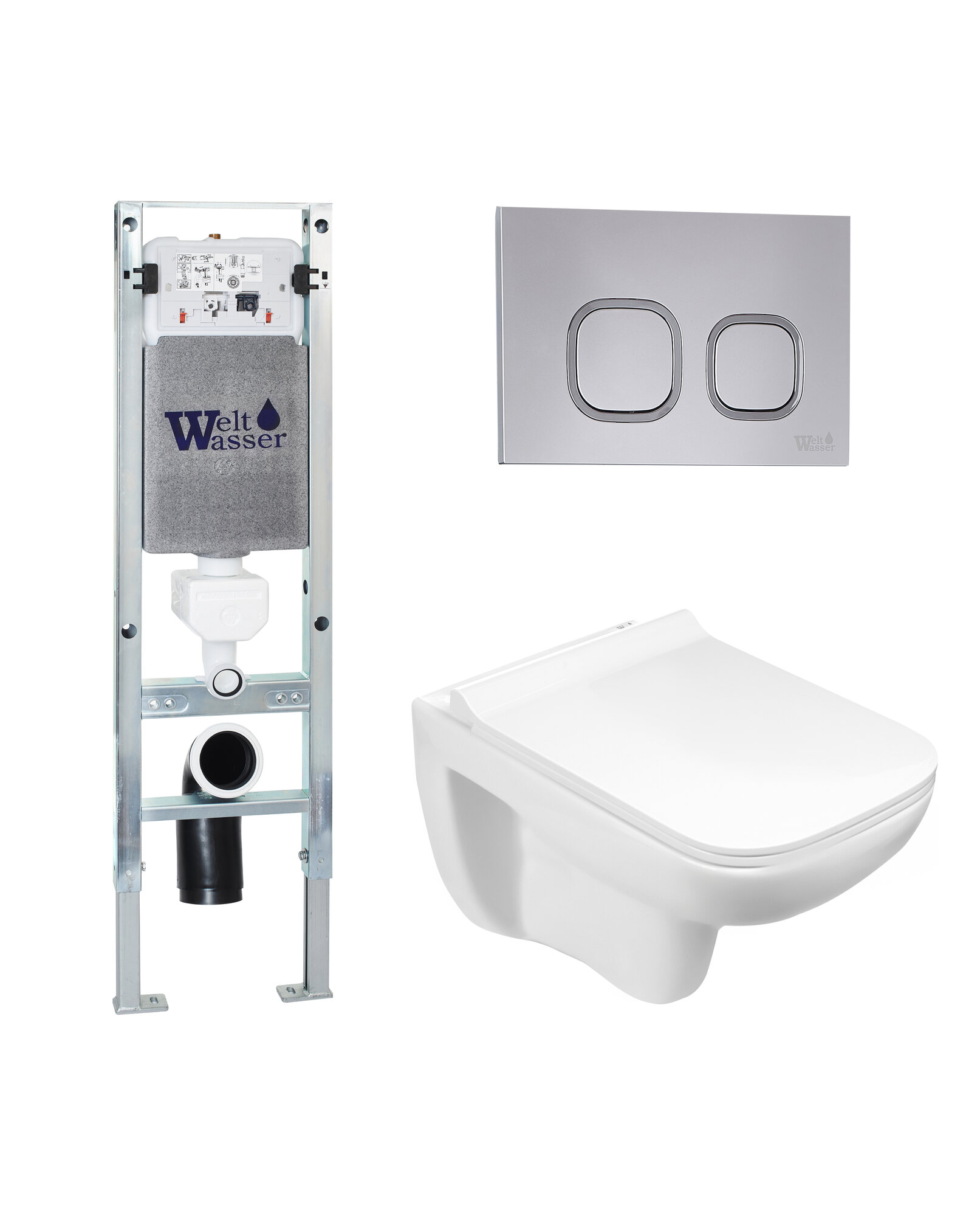 Купить Комплект 3 в 1: Weltwasser Кнопка хром AMBERG RD-CR+Инсталляция AMBERG 350 ST+Унитаз подвесной KEHLBACH 004 GL-WT