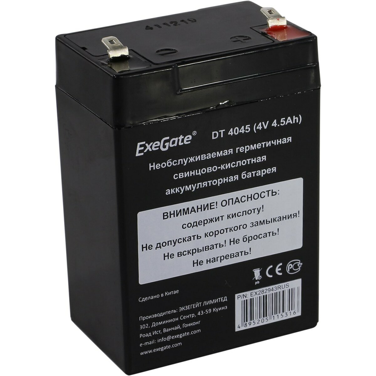ExeGate АКБ DT 4045 4V 4.5Ah, клеммы F1 282943