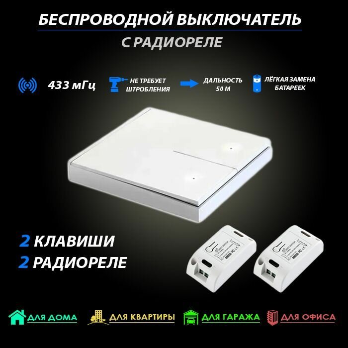 Беспроводной выключатель белый с точкой 2 клавиши + 2 реле интересное: