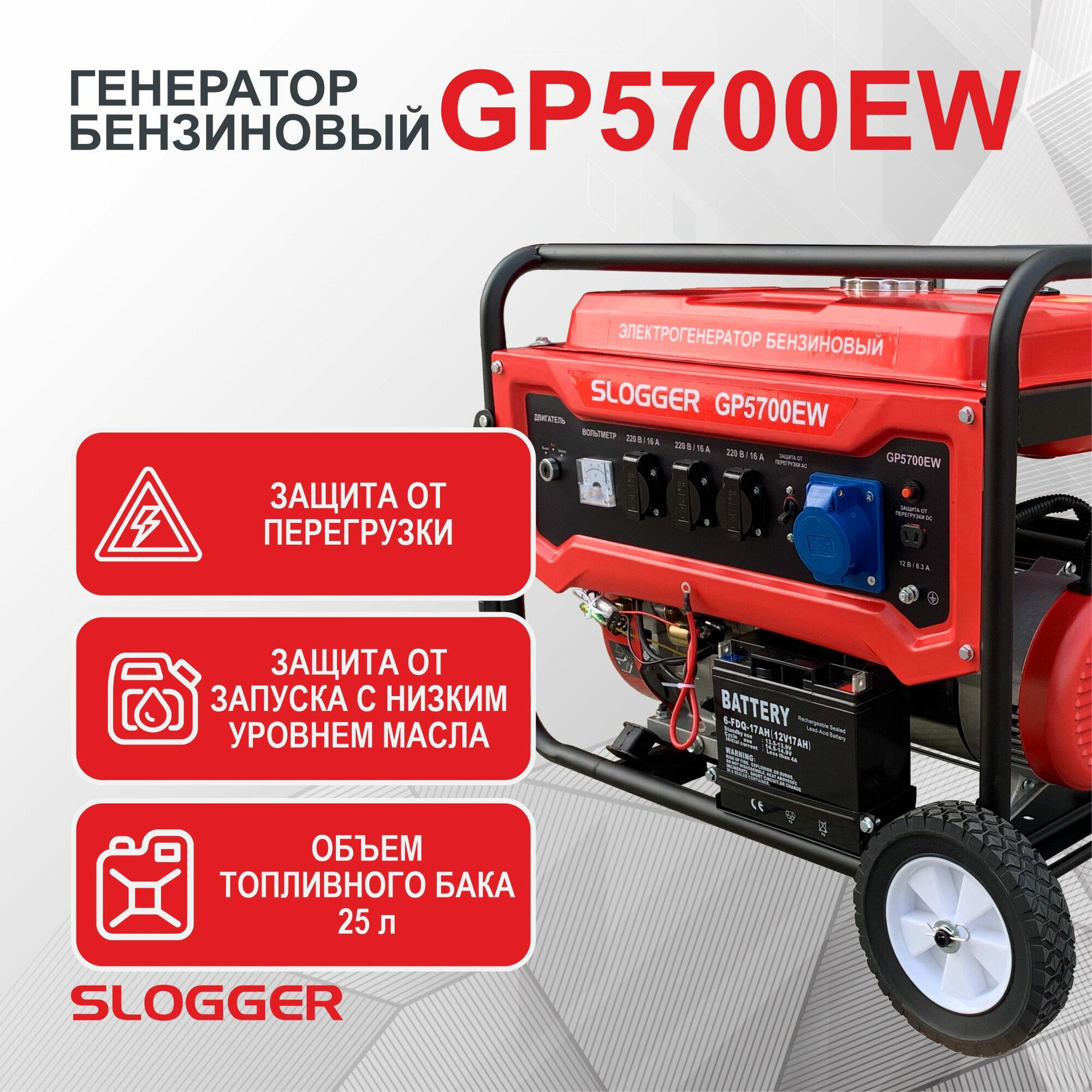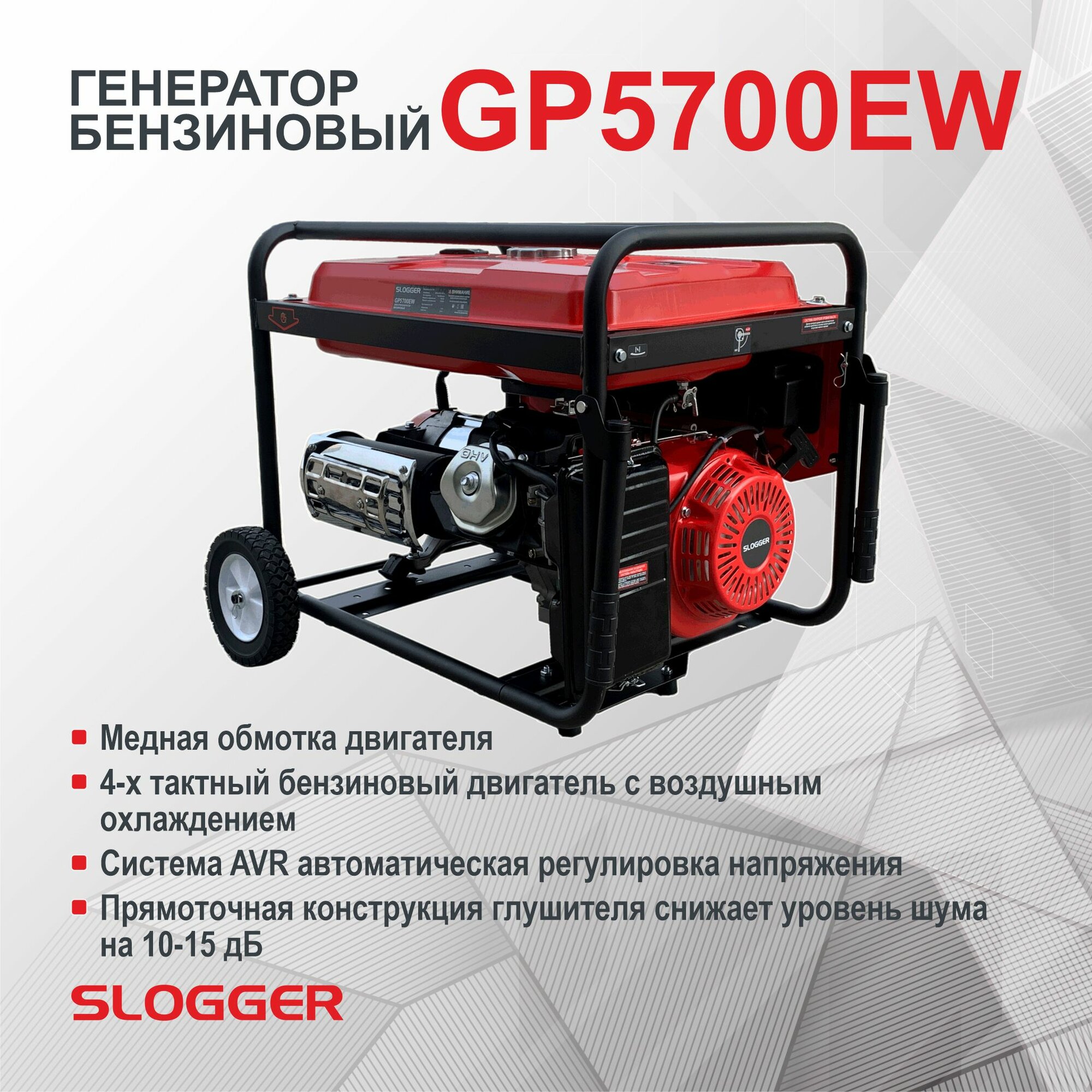 Купить Генератор бензиновый Электрический с электростартером Slogger GP5700EW (5.2 кВт, 14.5 л.с,)