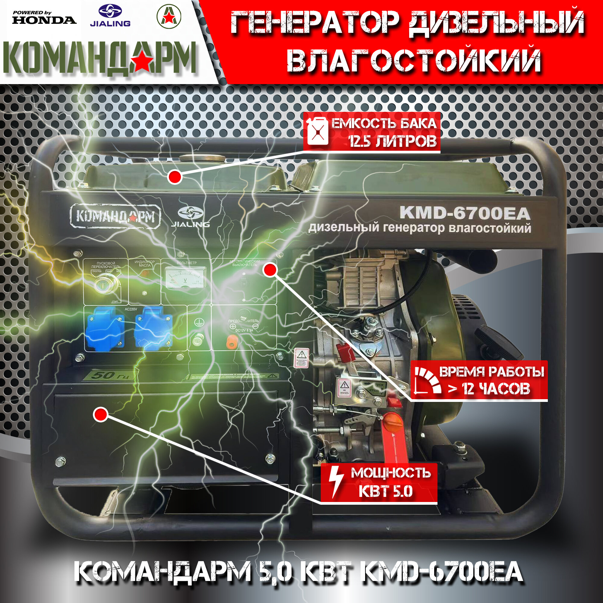 Генератор дизельный Командарм 5,0 кВт KMD-6700EA интересное: