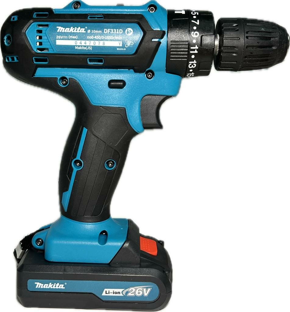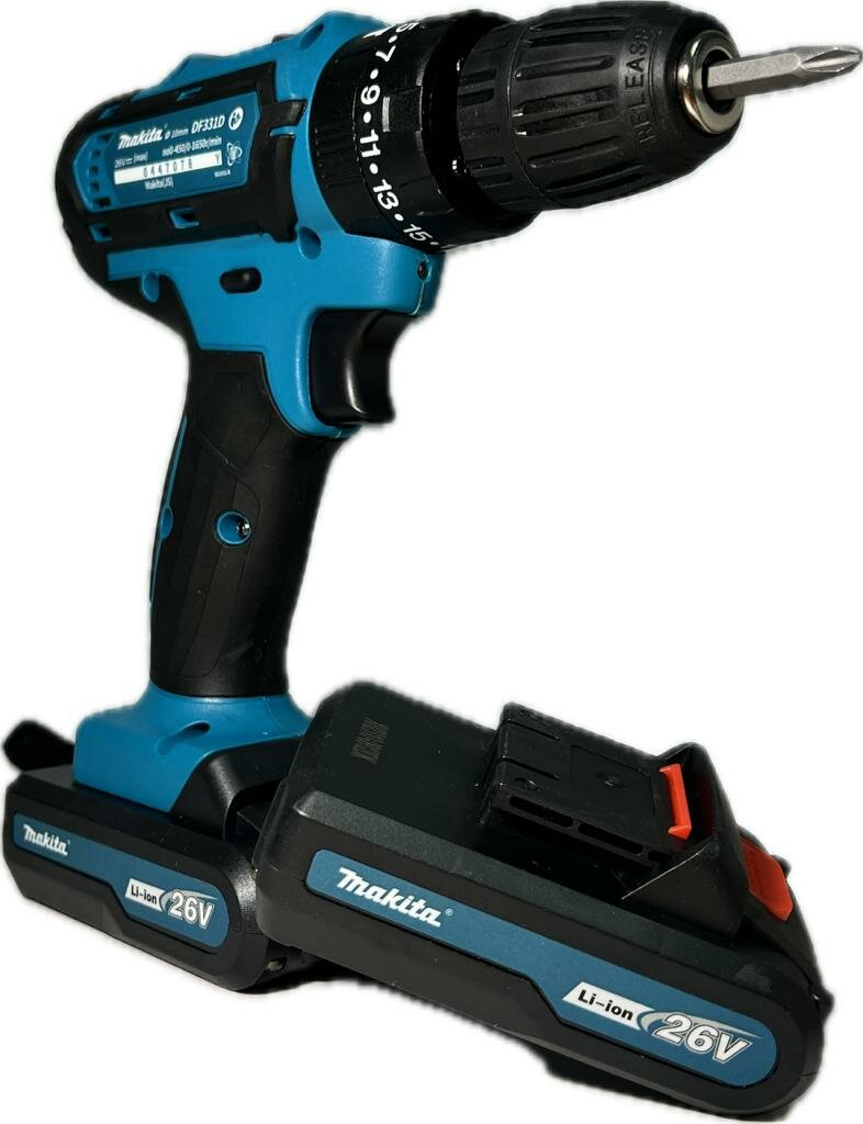 Ударная Дрель-шуруповёрт 21V, аналог Makita, с 2-мя аккумуляторами и набором инструментов в кейсе