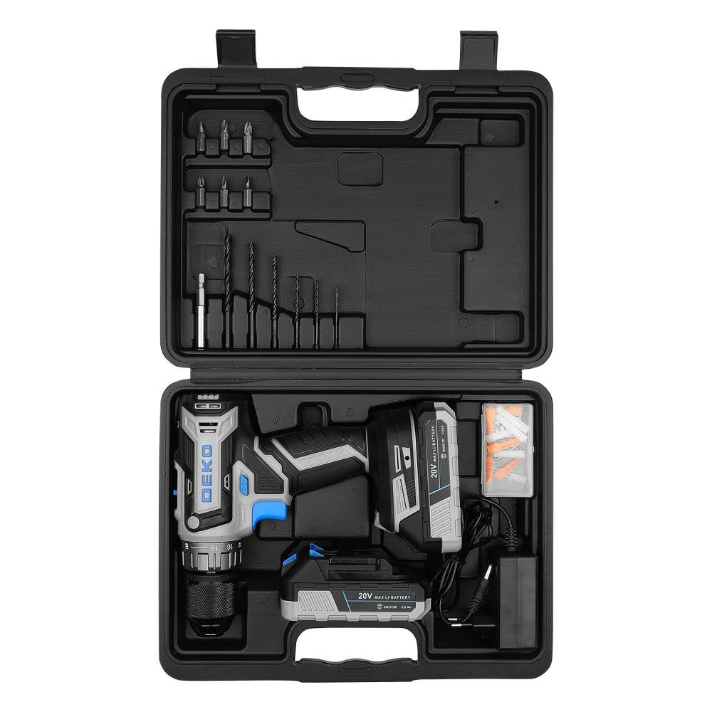 Купить Дрель-шуруповерт аккумуляторная DEKO DKCD20V PRO в кейсе + набор 63 инструмента 20В 2x2.0Ач 080-1001