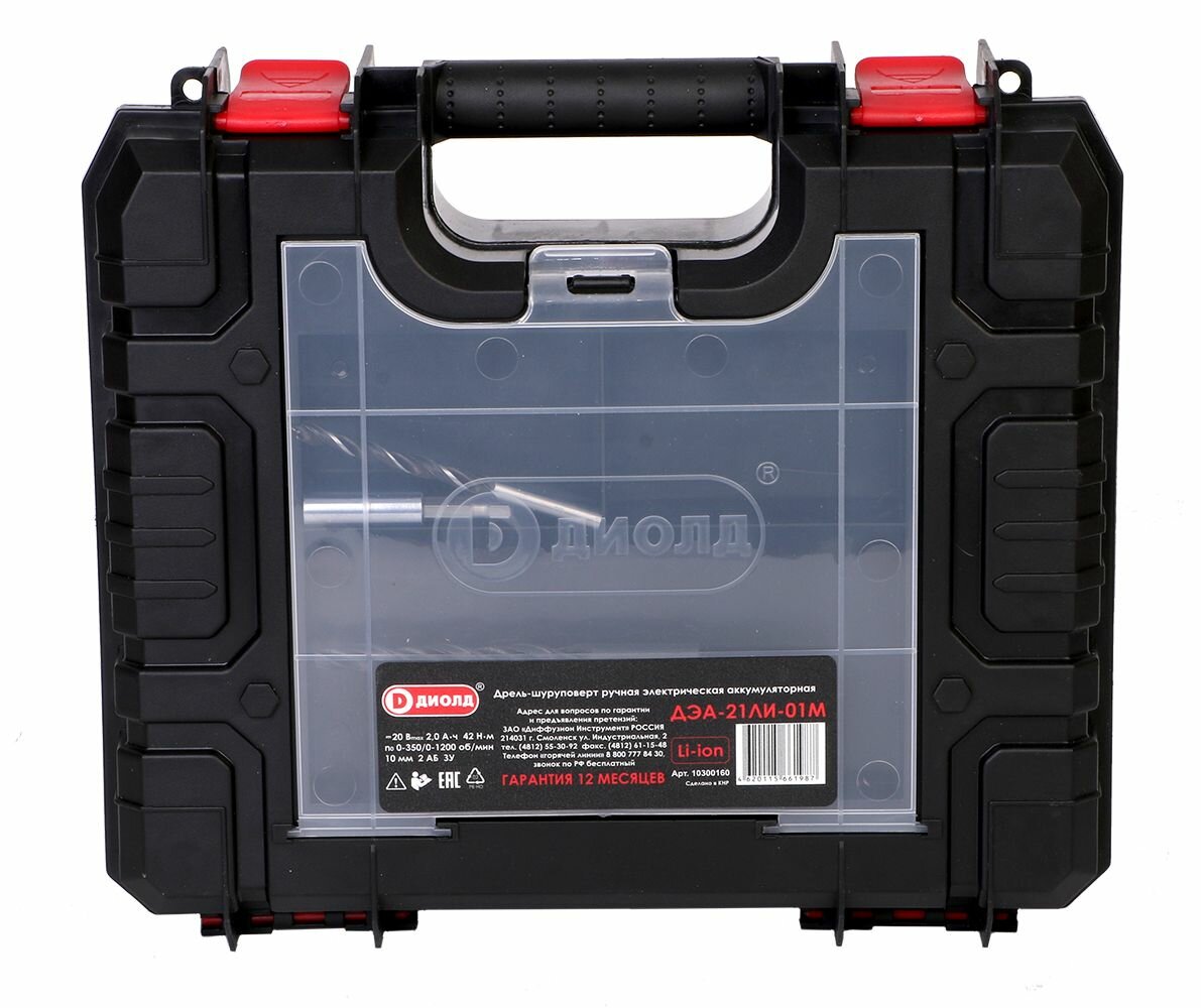 Дрель/шуруповерт аккумуляторный ДЭА-21ЛИ-01М диолд, 20В, кейс, 2АКБ -2А