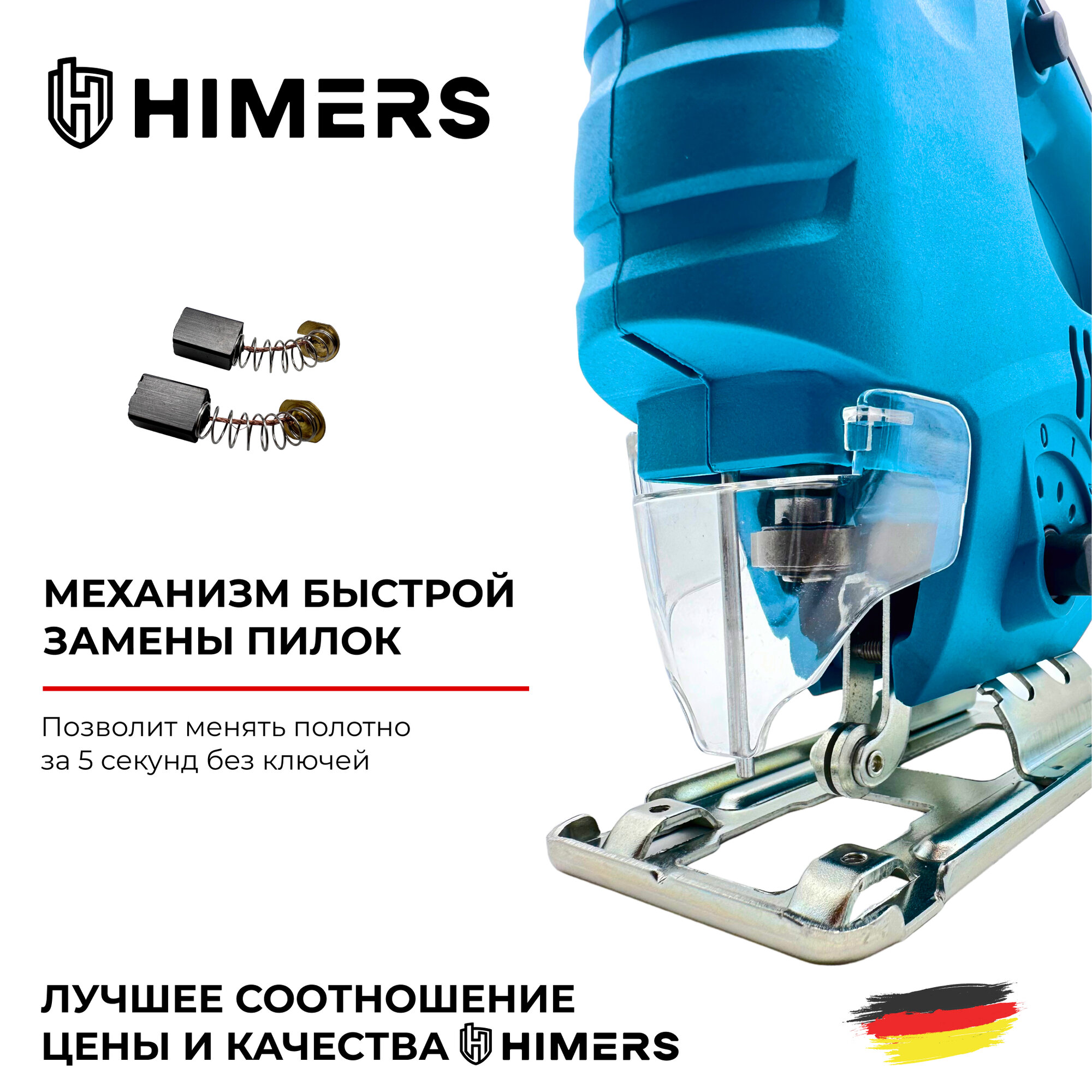 | Комплектация | ОСНОВНАЯ КОМПЛЕКТАЦИЯ: * Тушка лобзика * Ссылка и QR-код на электронное руководство по использованию и гарантийное обслуживание ДОПОЛНИТЕЛЬНАЯ КОМПЛЕКТАЦИЯ: * Тестовые пилки (до 3 шт) * Шестигранник * Защитный кейс * Запасные угольные щетки |