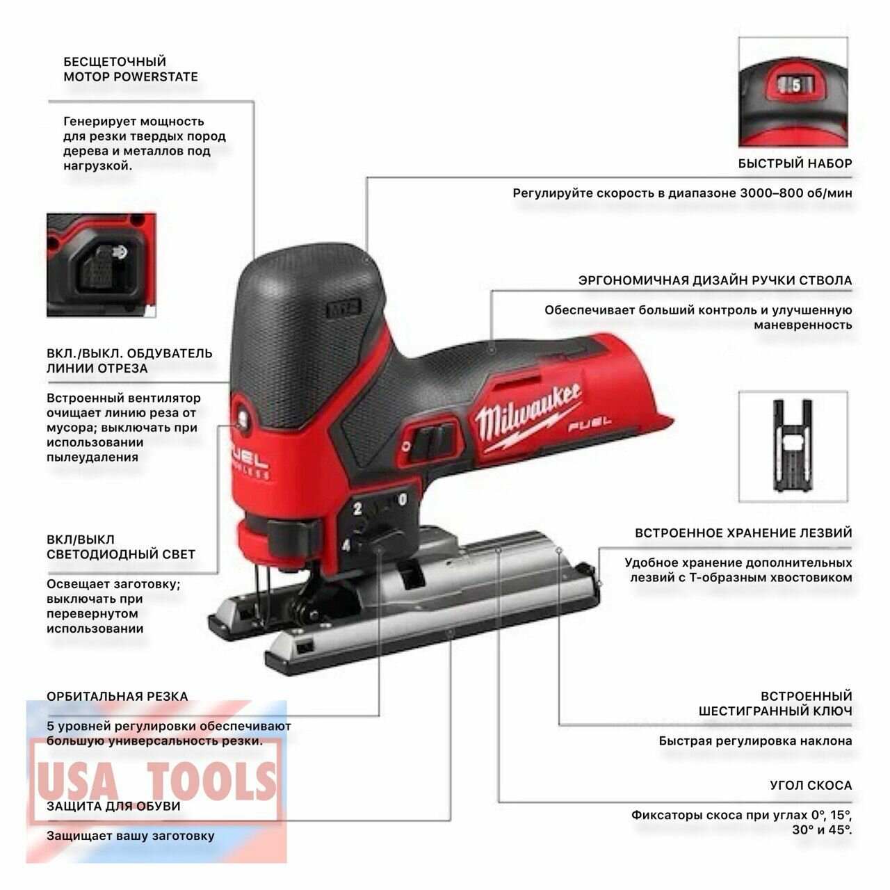 Лобзик бесщеточным FUEL M12 (без аккумуляторов и зарядного устройства) Milwaukee 2545-20 интересное: