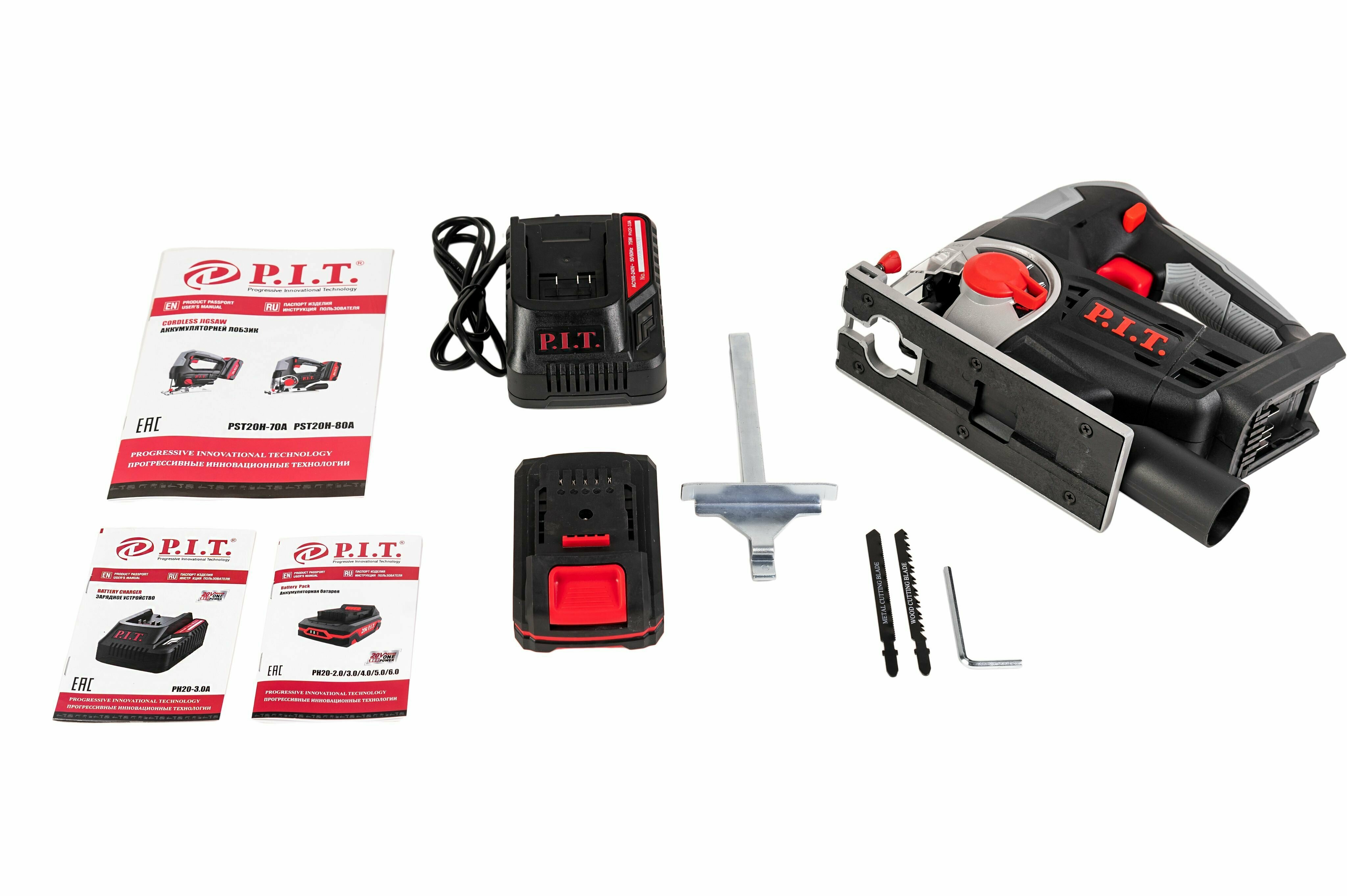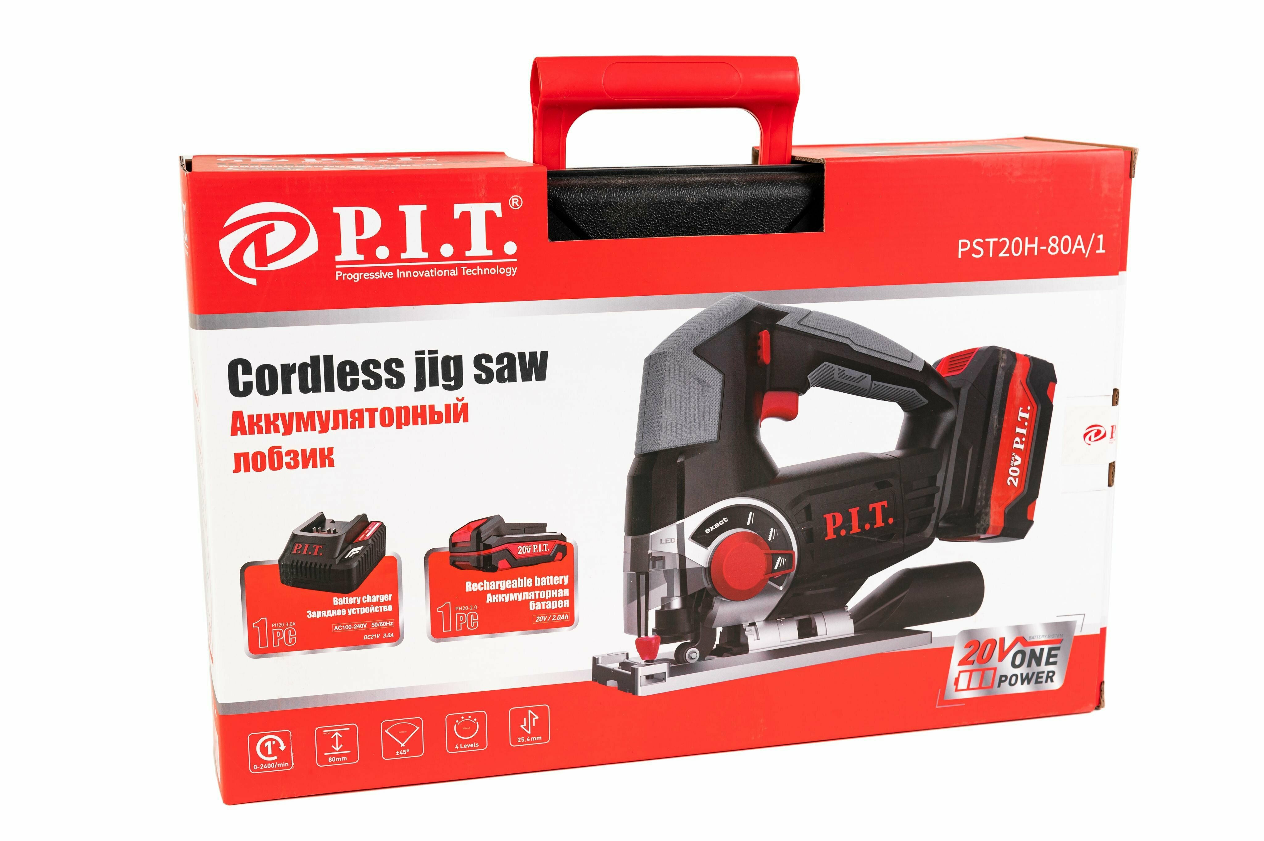 Лобзик аккумуляторный P.I.T. PST20H-80A/1, в кейсе, 20В, пропил 80мм, 2400 об/мин, БЗП, 1 АКБ Li-Ion 2Ач, ЗУ интересное: