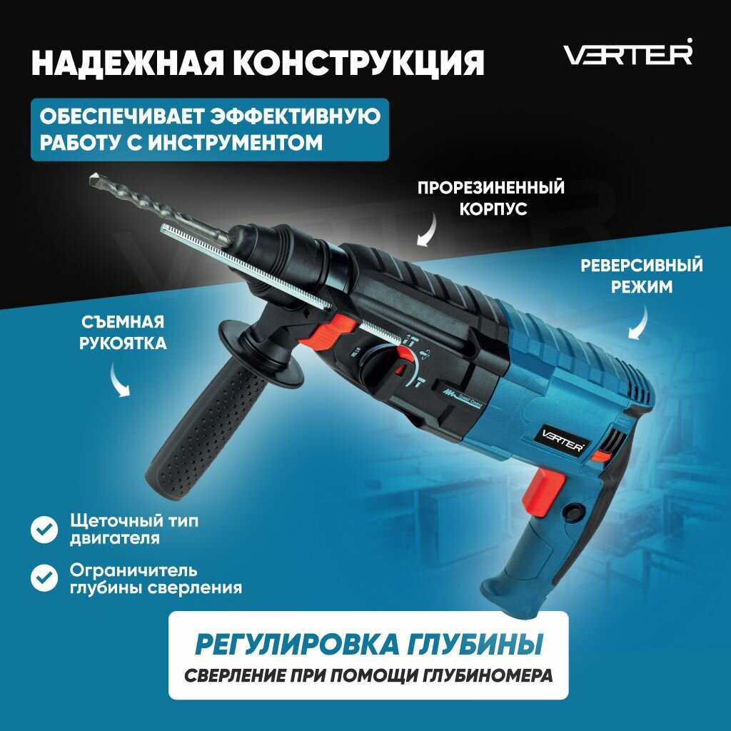 Перфоратор сетевой SDS-plus Verter, ударная дрель, 4000 уд/мин 850 Вт интересное:
