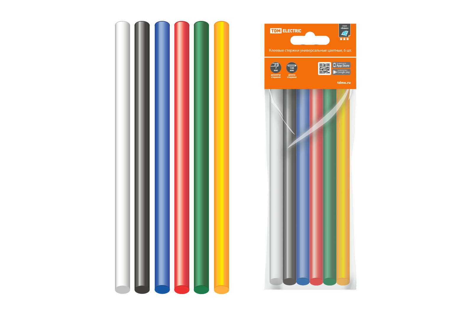 Купить Клеевые стержни универсальные цветные, 7 мм x 100 мм, набор 6 шт, "Алмаз" TDM