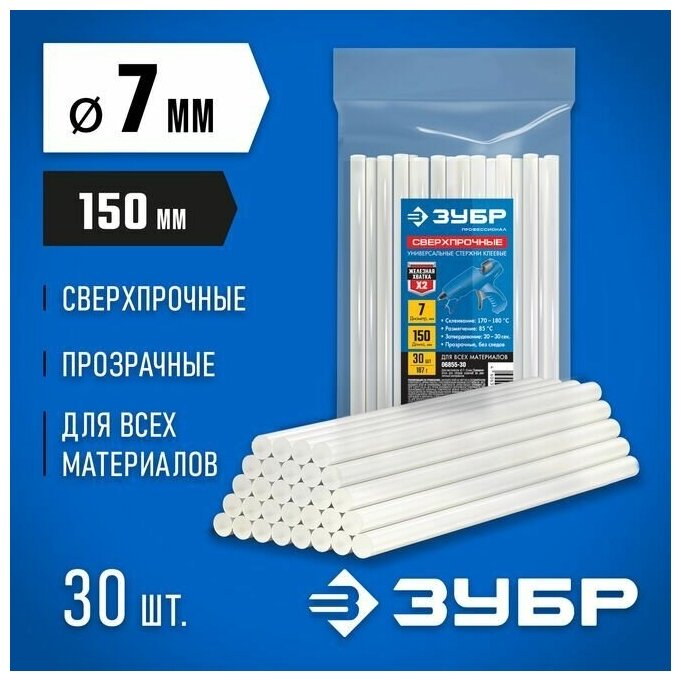 ЗУБР 7х150 мм, 30 шт, Сверхпрочные клеевые стержни прозрачные, Профессионал (06855-30) интересное: