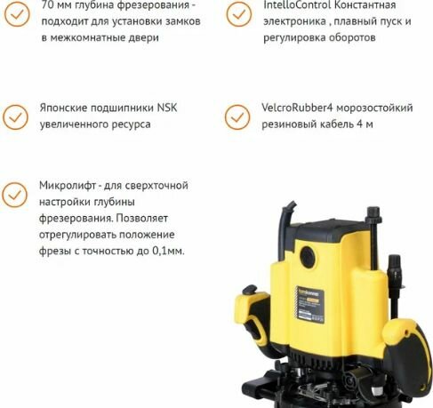 | Подробная комплектация | Гаечный ключ 1 шт. Параллельная направляющая 1 компл. Патрон 12 мм 1 шт. (в машине) Патрон 8 мм 1 шт. Направляющая для триммера 1 шт. Копировальная втулка 1 шт. Угольная щетка 2 шт. Трубка для подключения пылесоса 1 шт. Регулировочный винт – 1шт. |