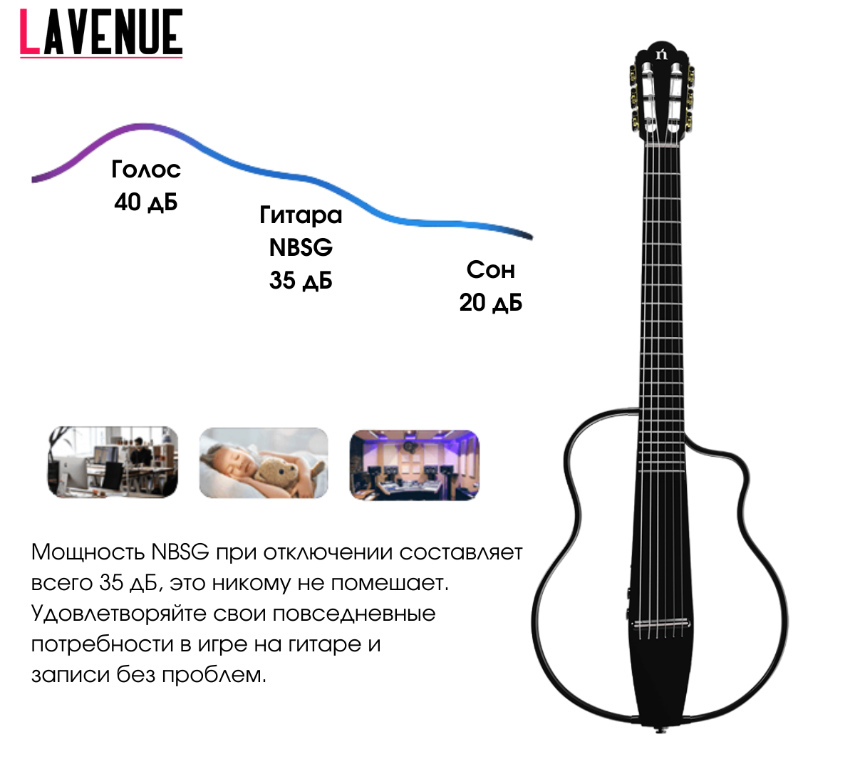 Купить Беспроводная смарт гитара LAVENUE NBSG Silence Nylon Black (Natasha)