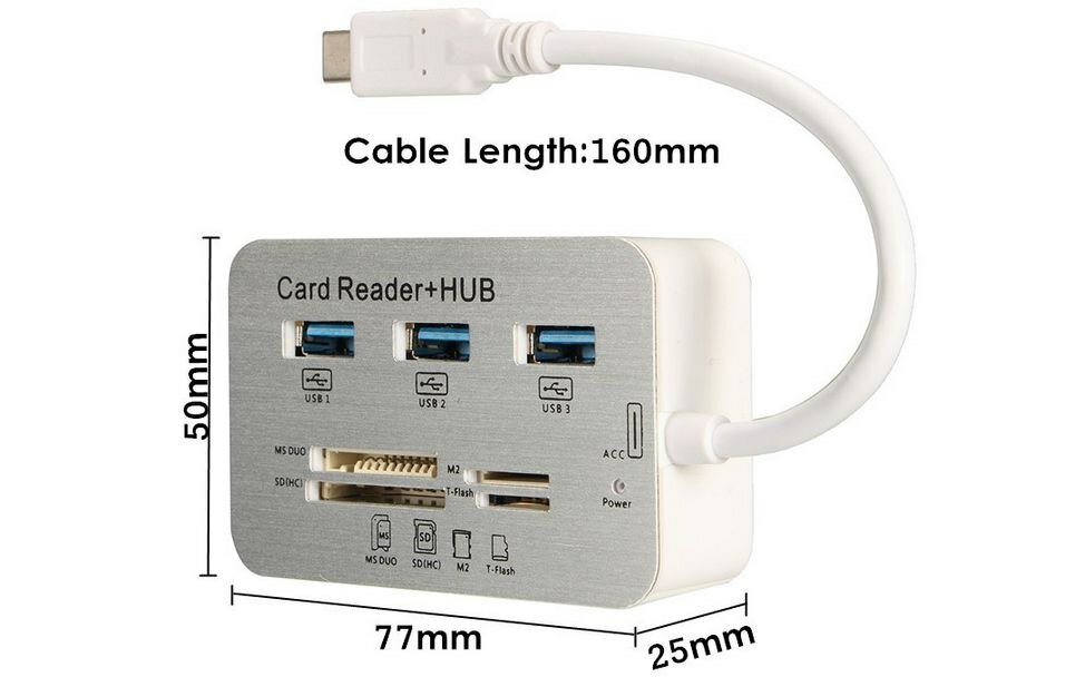 USB хаб-картридер HUB USB - Type-C 3.0/3.1, 3xUSB, MS DUO, SD (HC), M2, T-Flash, (Caution4553) интересное: