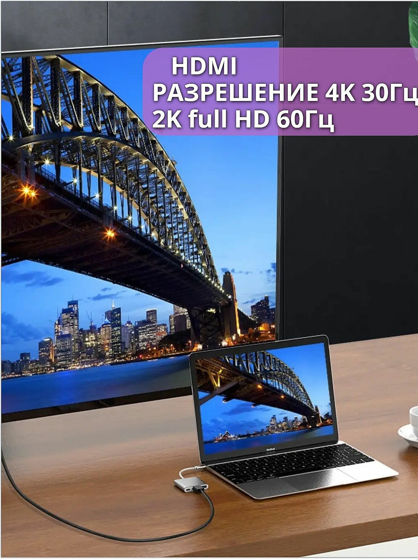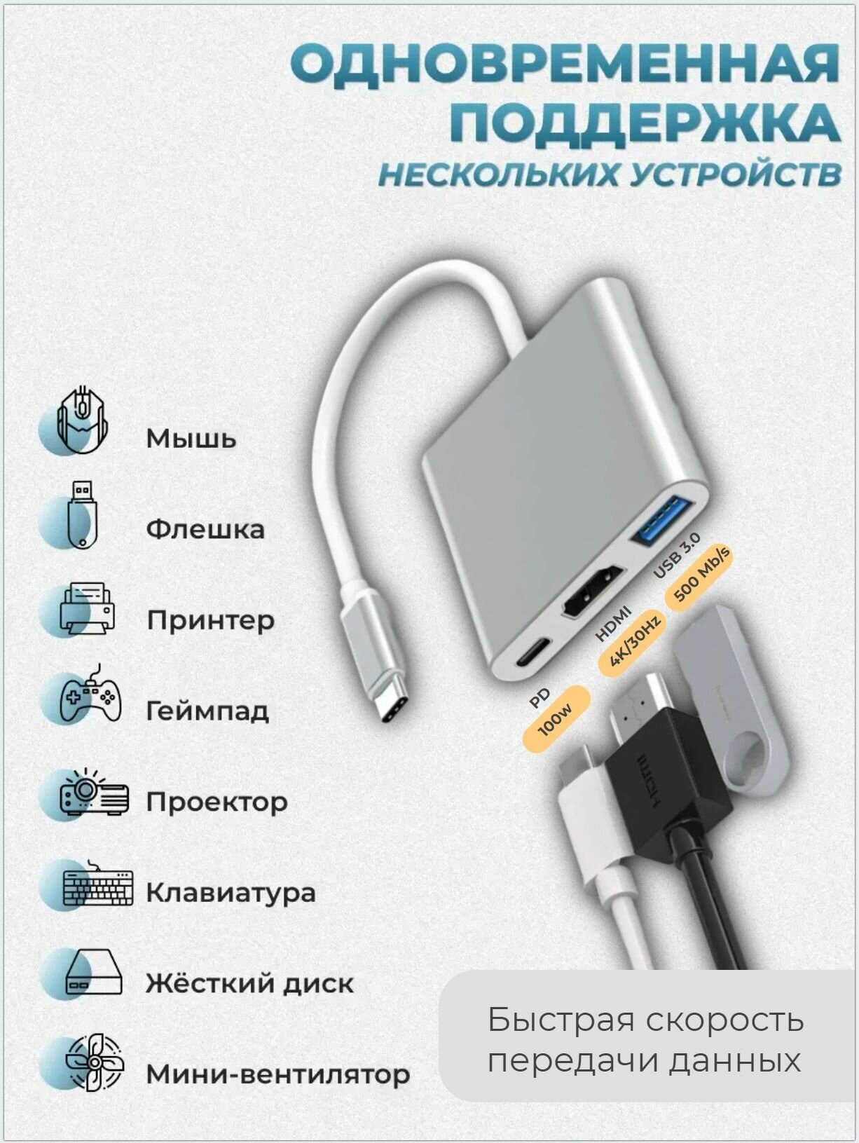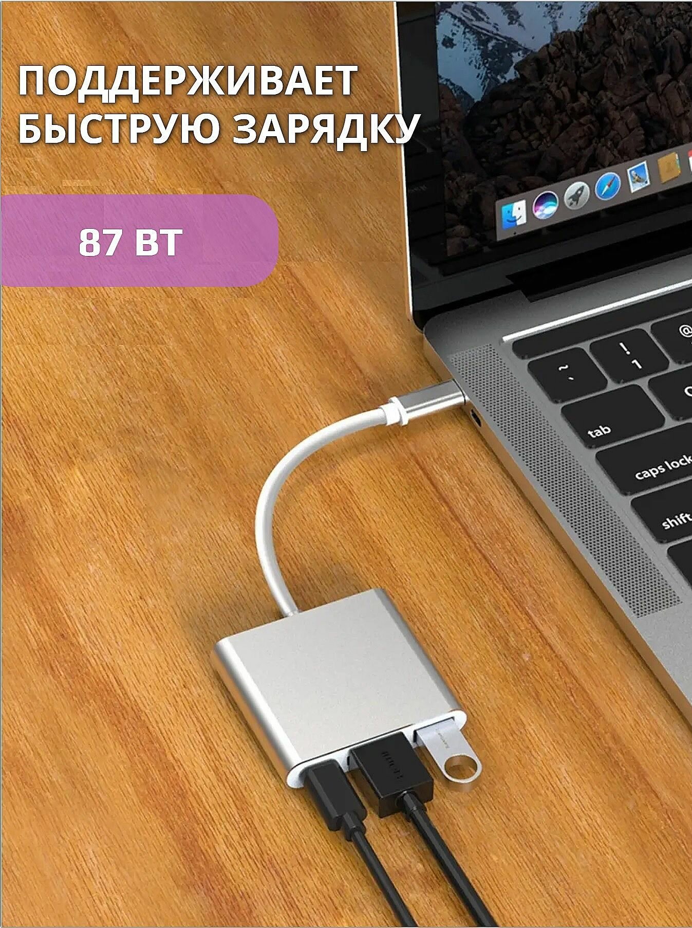 USB HUB разветвитель 3 в 1 Type C для MacBook / USB / HDMI адаптер 4k/ USB HUB 3.0 / быстрая зарядка интересное: