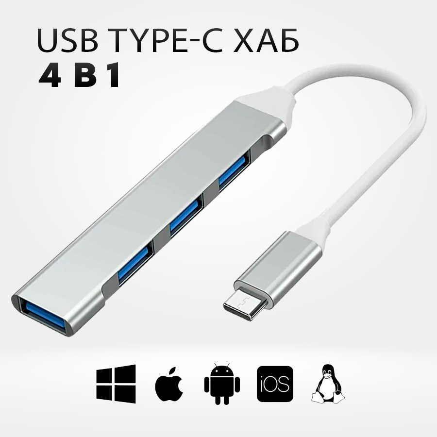 Купить Хаб Type-C концентратор | USB хаб 3.0 4xUSB 3.0 - для макбука, android, айфона и других устройств