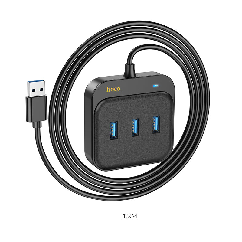 Купить USB Хаб (HB35) с 1 USB на 3 USB 3.0+RJ45, HOCO, L=1.2M, черный