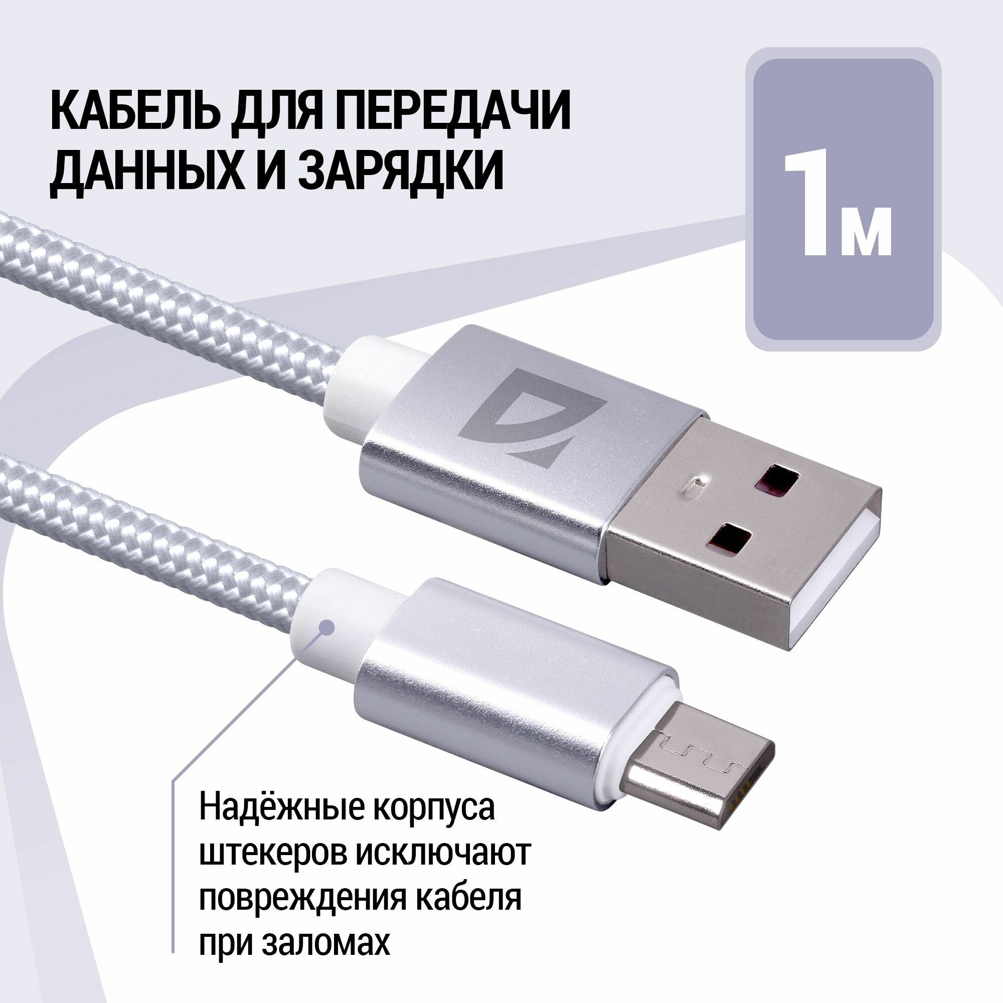 Купить USB кабель Defender F85 Micro белый, 1м, 1.5А, нейлон, пакет
