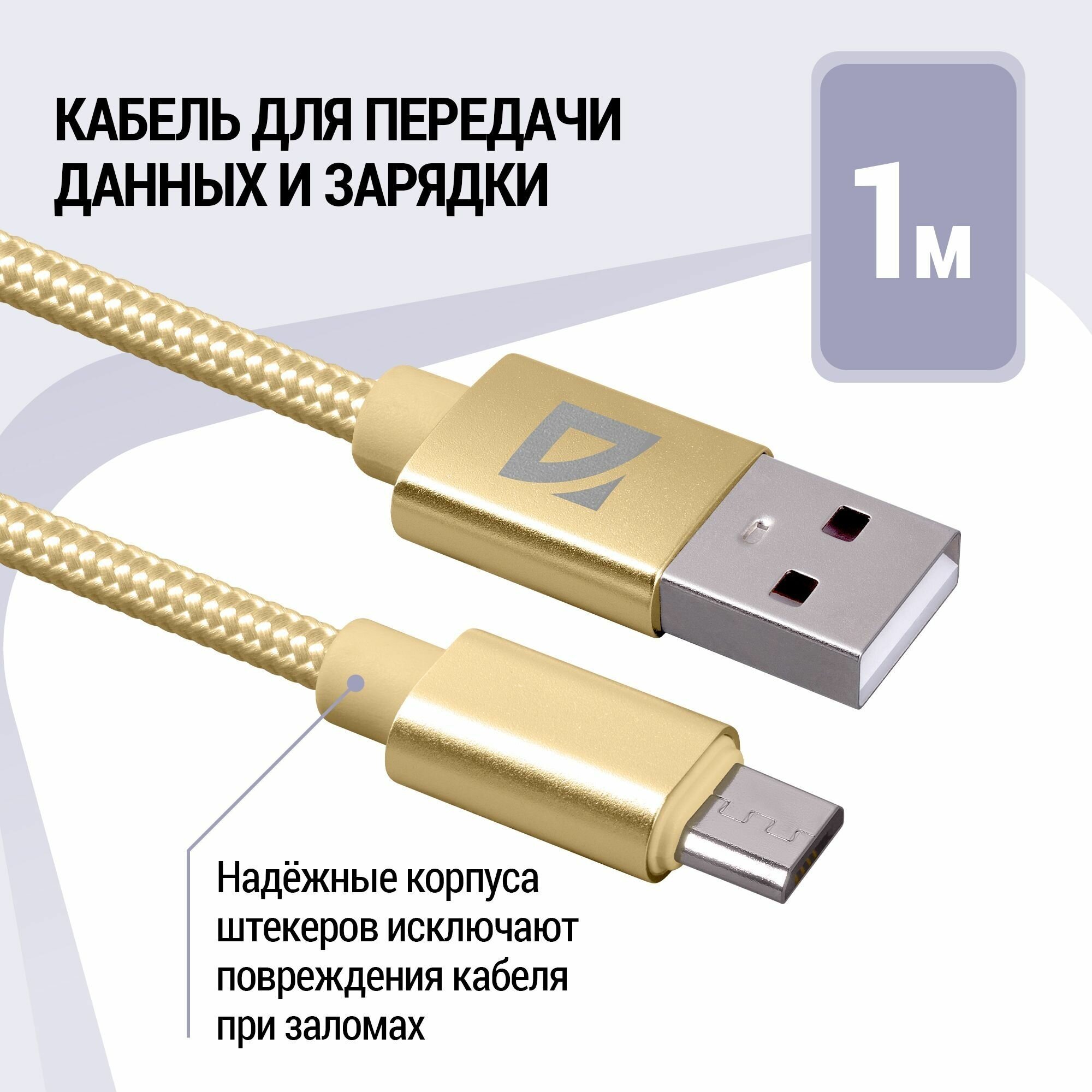 Купить USB кабель Defender F85 Micro золотой, 1м, 1.5А, нейлон, пакет