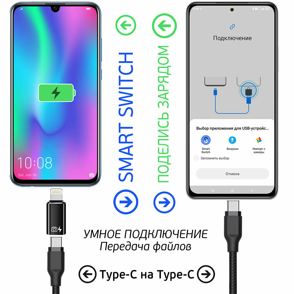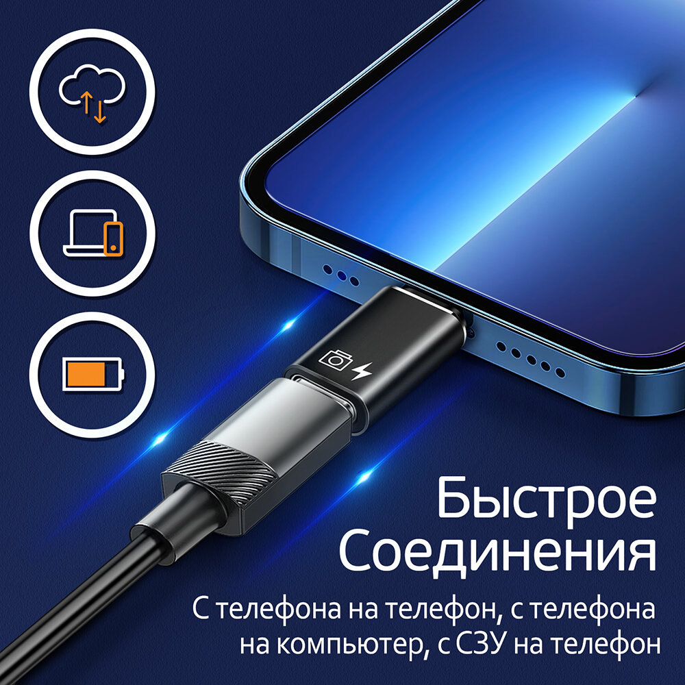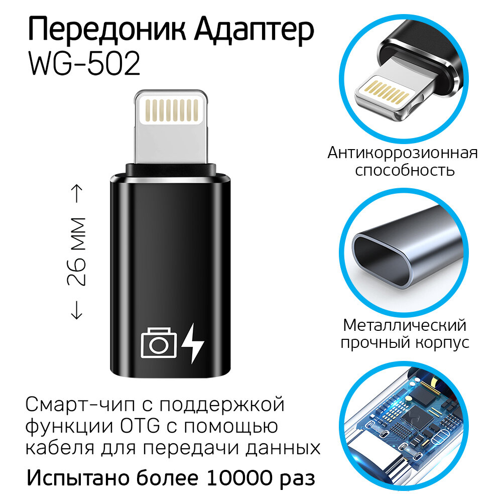 Переходник коннектор с Type-C на iPhone Lightning c поддержкой OTG функцией, Адаптер для зарядки и передачи данных, WG502, черный интересное: