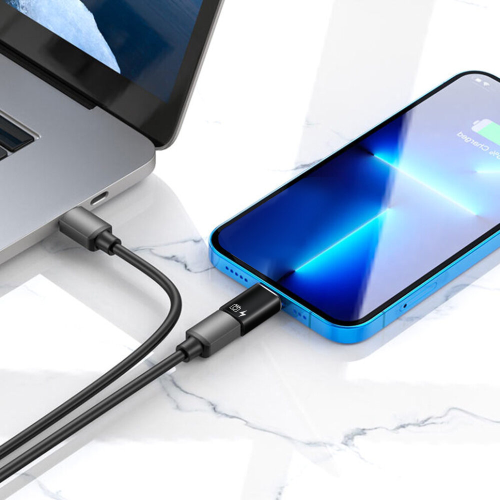 Купить Переходник коннектор с Type-C на iPhone Lightning c поддержкой OTG функцией, Адаптер для зарядки и передачи данных, WG502, черный