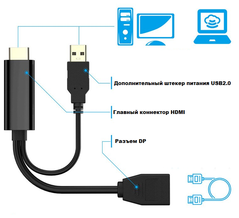 | Разъемы | DisplayPort (F) - HDMI (M) |