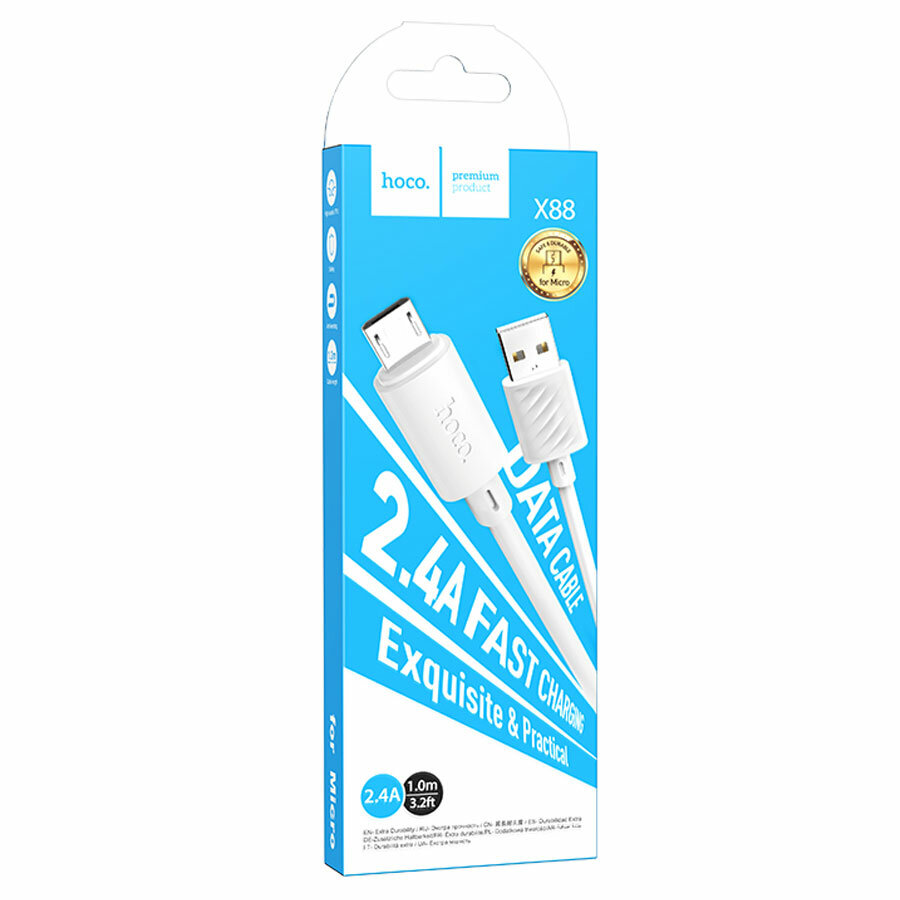 Кабель USB - microUSB (Am-Bm) Hoco X88 Gratified, 1 м, цвет: белый