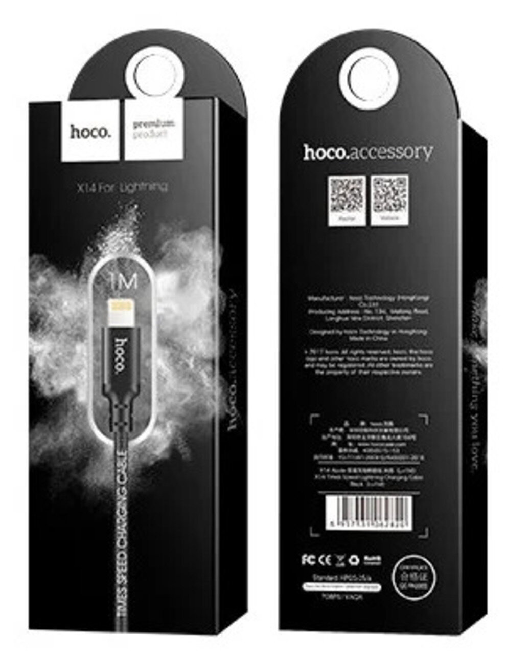 Купить Кабель Hoco X14 USB - Lightning 1 м, черный для зарядки iPhone, iPad, AirPods, Кабель Быстрая зарядка для iPhone / Провод для Айфона