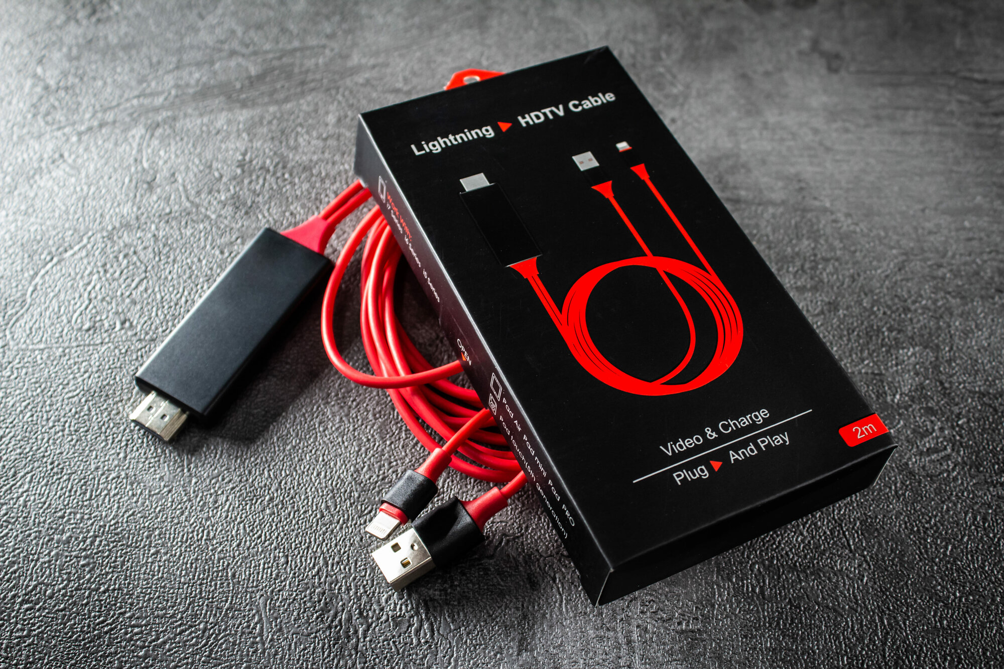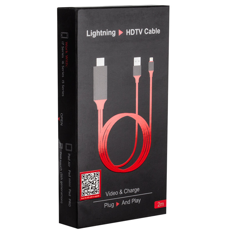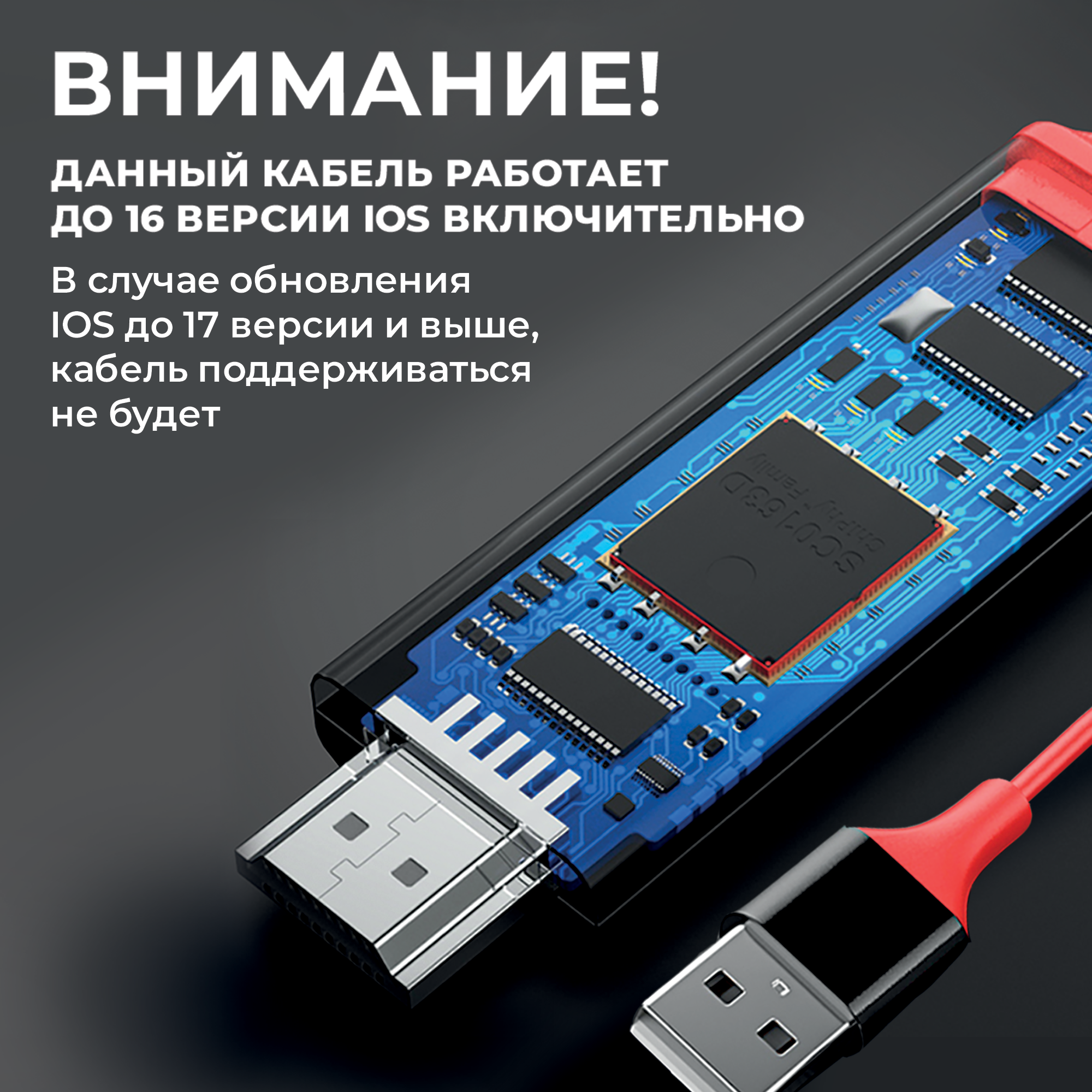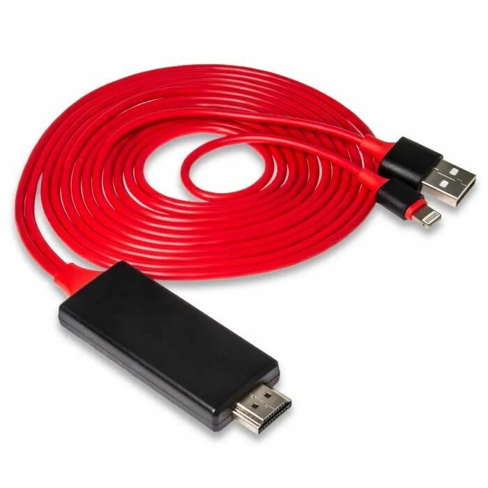 Hdmi кабель-переходник для iphone Lightning с питанием через USB, 2 м, удлинитель для айфона, провод переходник, красный