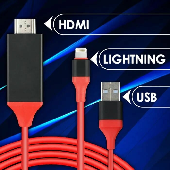 Разветвитель hdmi кабель для iphone Lightning с питанием через USB, AMFOX, 2 м, удлинитель для айфона, провод переходник на displayport, красный интересное: