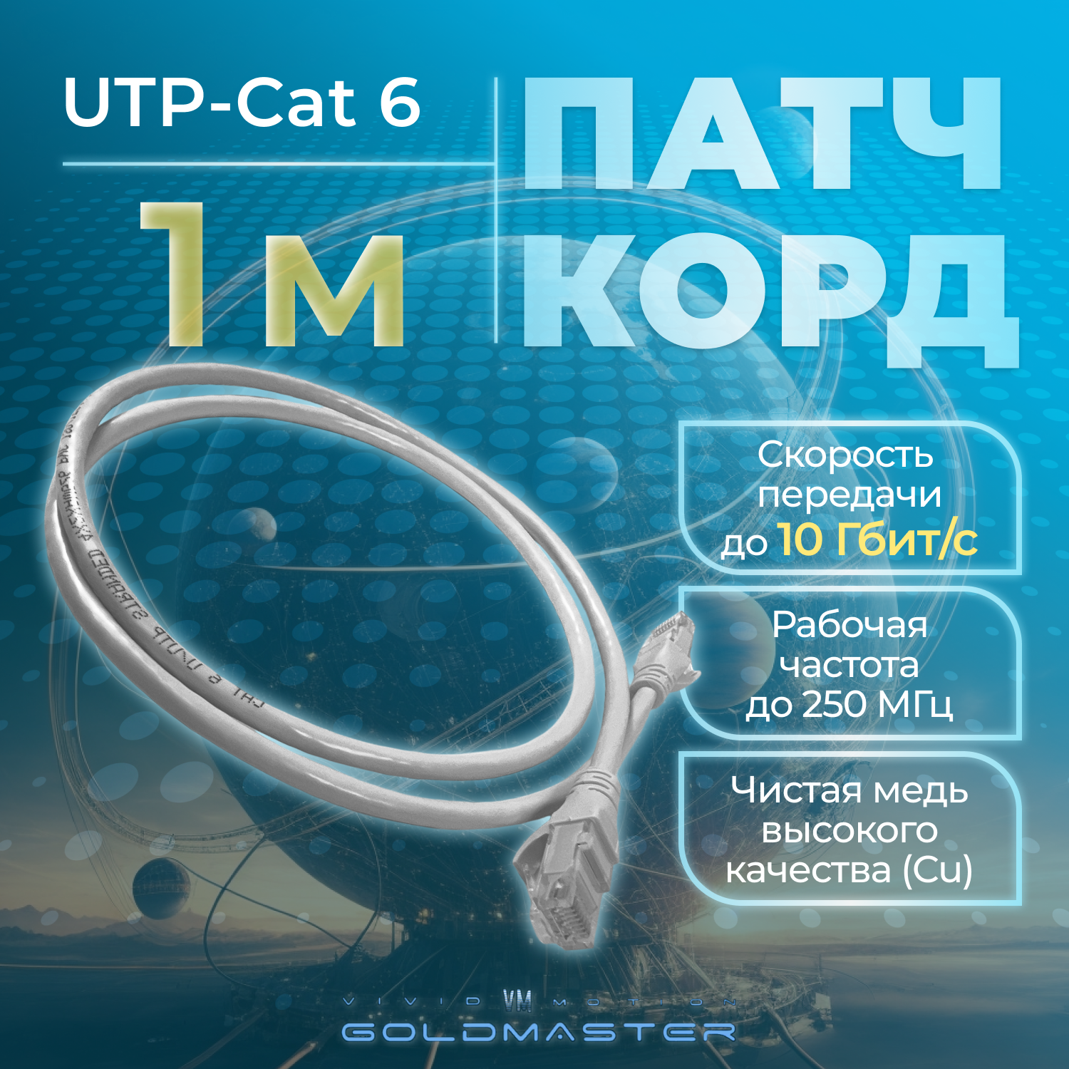 Купить Патч-корд GoldMaster1м, UTP cat6, медь, RJ45, Ethernet, LAN, серый, NA102-1m, контакты Blade позолота 03MU
