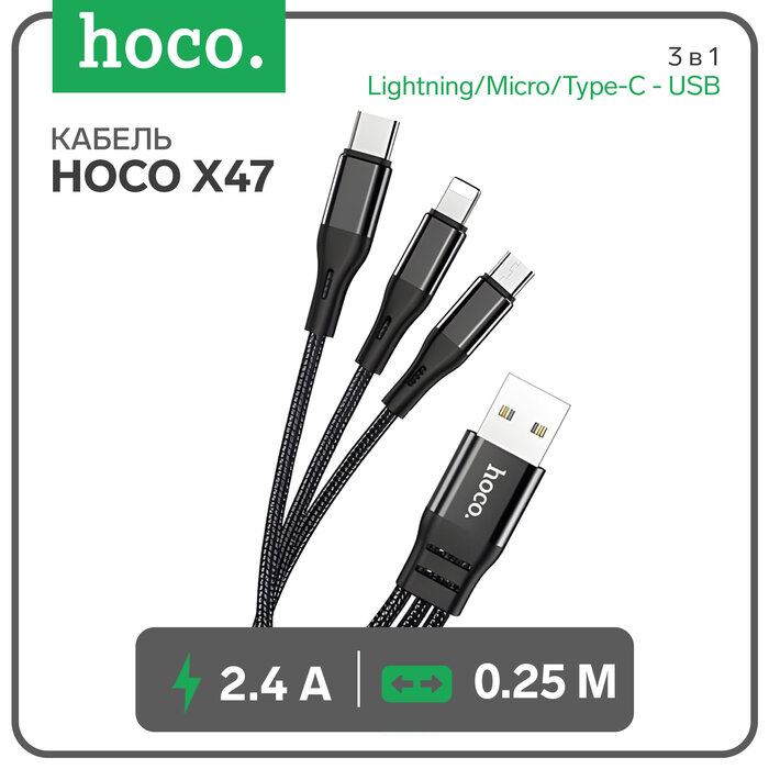 Купить Hoco Кабель HOCO X47 3-в-1 (Lightning+Type-C+Micro), 0,25 м, 2,4А