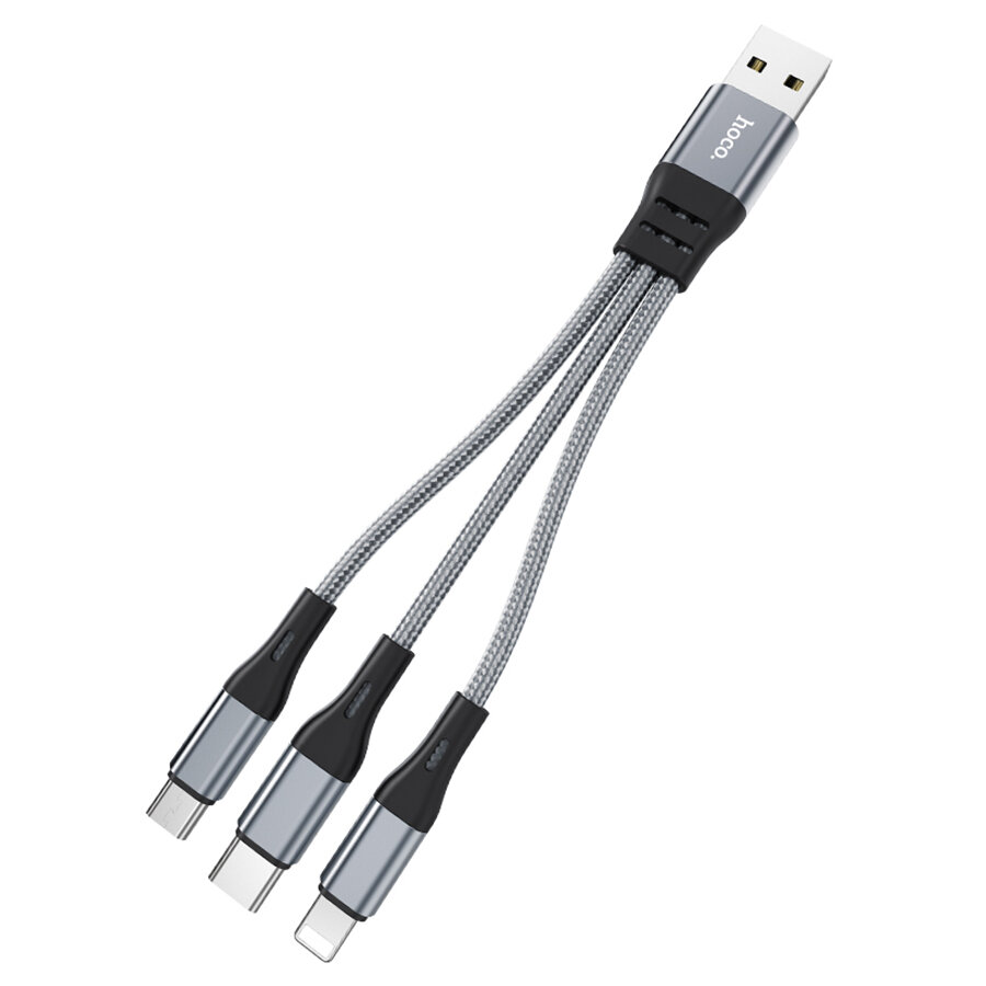 Купить Кабель для айфон USB HOCO X47 Harbor 3 в 1 USB - Type-C + Lightning + MicroUSB, 2.4А, 25 см, серый металлик