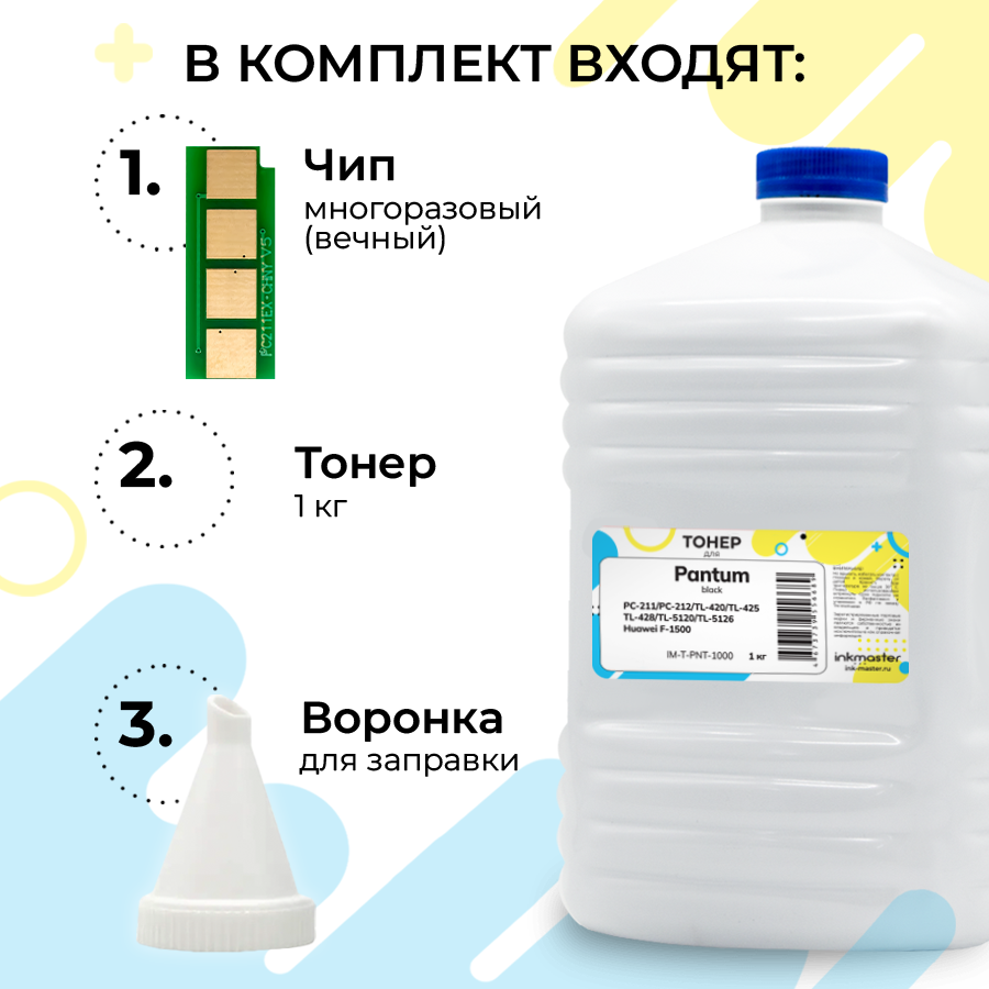 Заправочный комплект для Pantum PC-211EV (тонер 1 кг + чип с автосбросом + воронка)