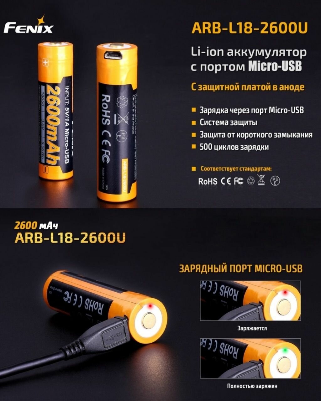 Купить Fenix Аккумулятор 18650 с разъемом для USB Arb-l18-2600u 3302 .