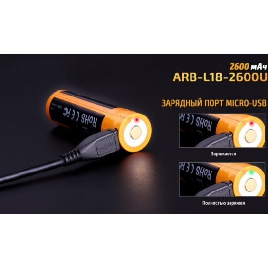 Аккумулятор Fenix ARB-L18-2600U Li-ion 18650 2600 mAh w/ biult-in microUSB