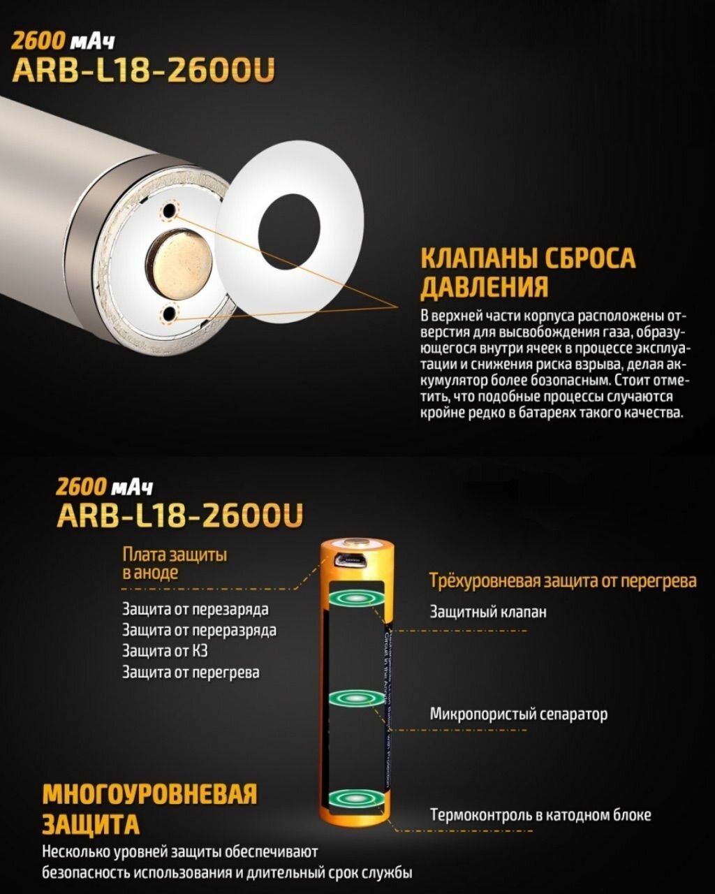 СохранитьFenix Аккумулятор 18650 с разъемом для USB Arb-l18-2600u 3302 . интересное: