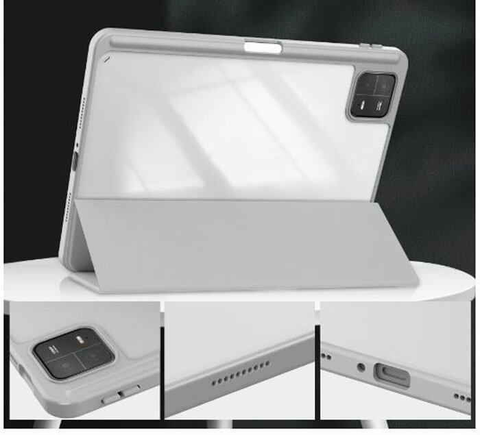 Чехол для планшета Xiaomi Mi Pad 6 / Mi Pad 6 Pro (11 дюймов), микрофибра, держатель для стилуса, из мягкого силикона (серый)