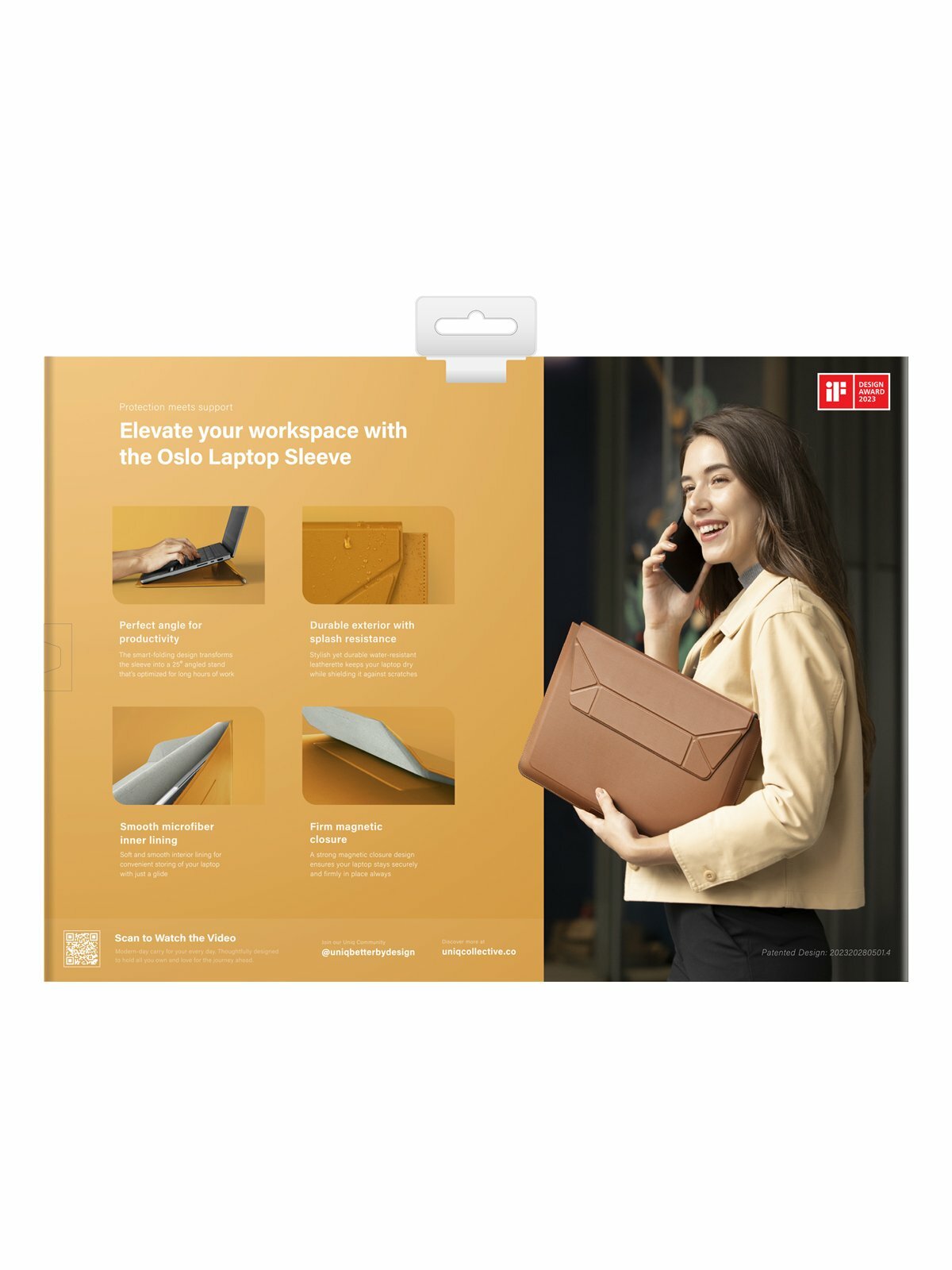 Uniq для ноутбуков 14" чехол Oslo V.2 PU leather Magnetic Laptop sleeve/foldable stand Mustard