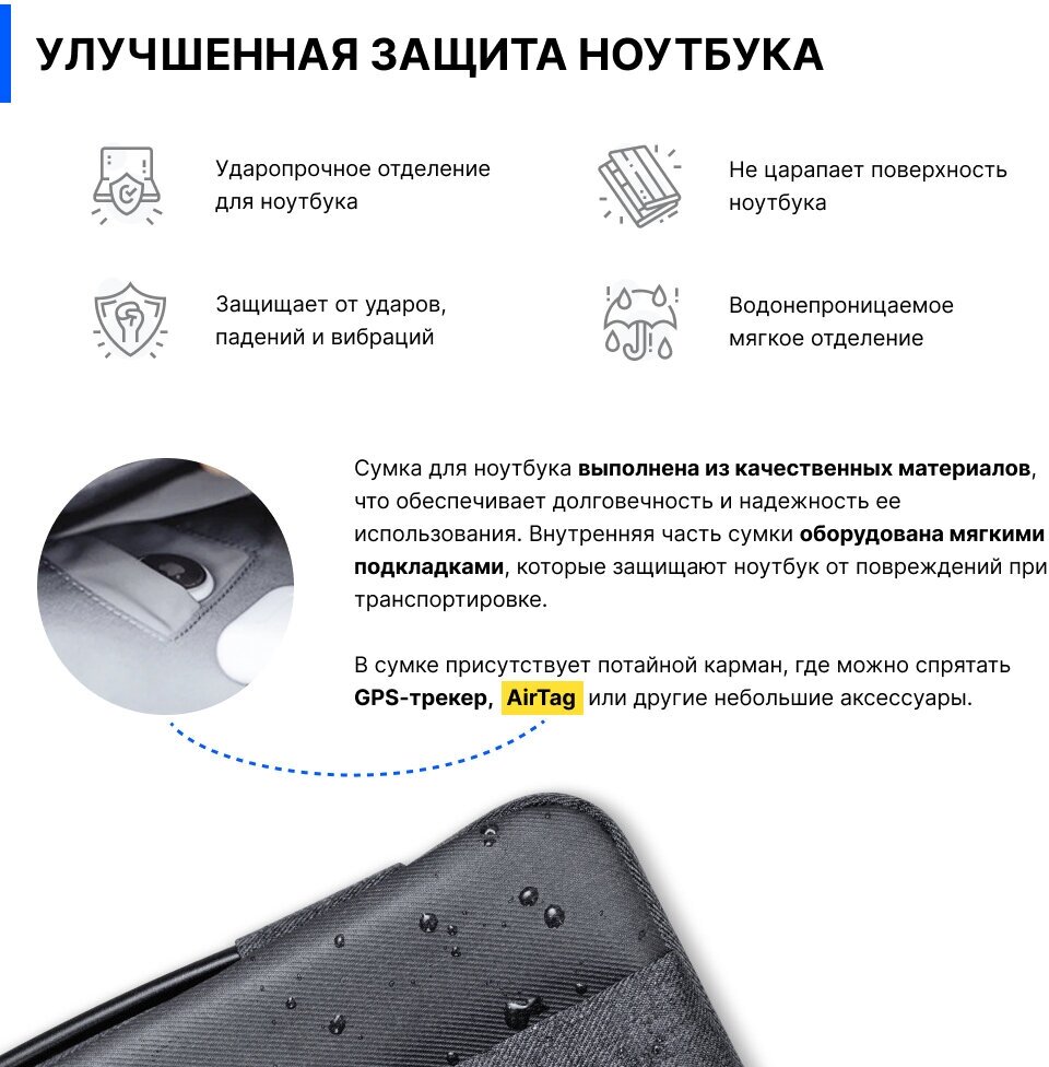 | Особенности | внешний карман, защита от боковых ударов, защита от воды, защита углов |