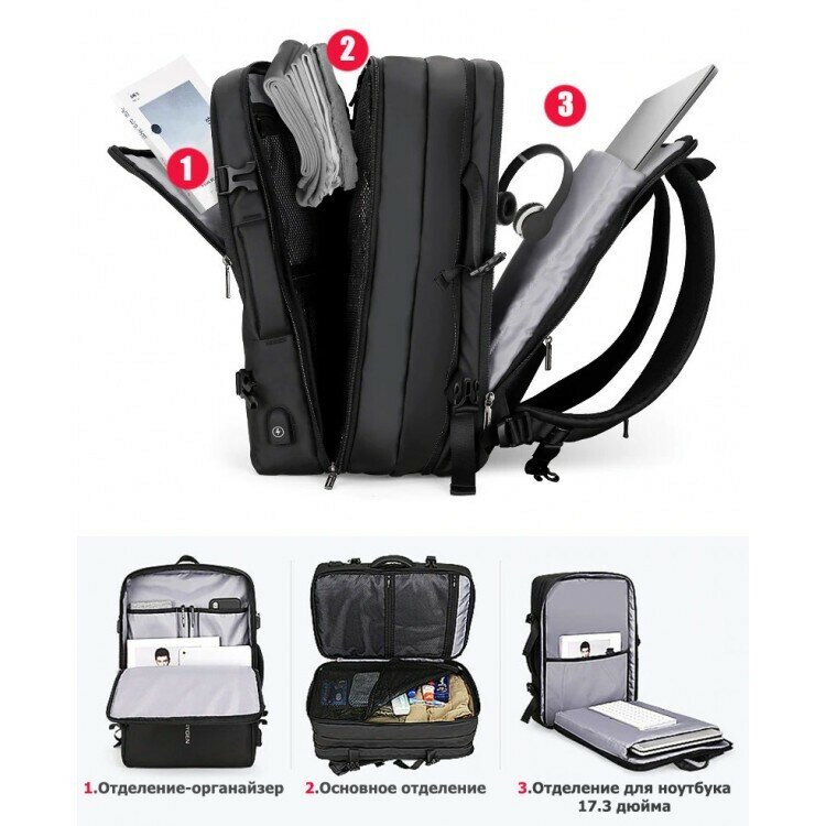 Рюкзак-сумка городской Mark Ryden MR8057 Черный с расширением и отделением для ноутбука до 17 дюймов интересное: