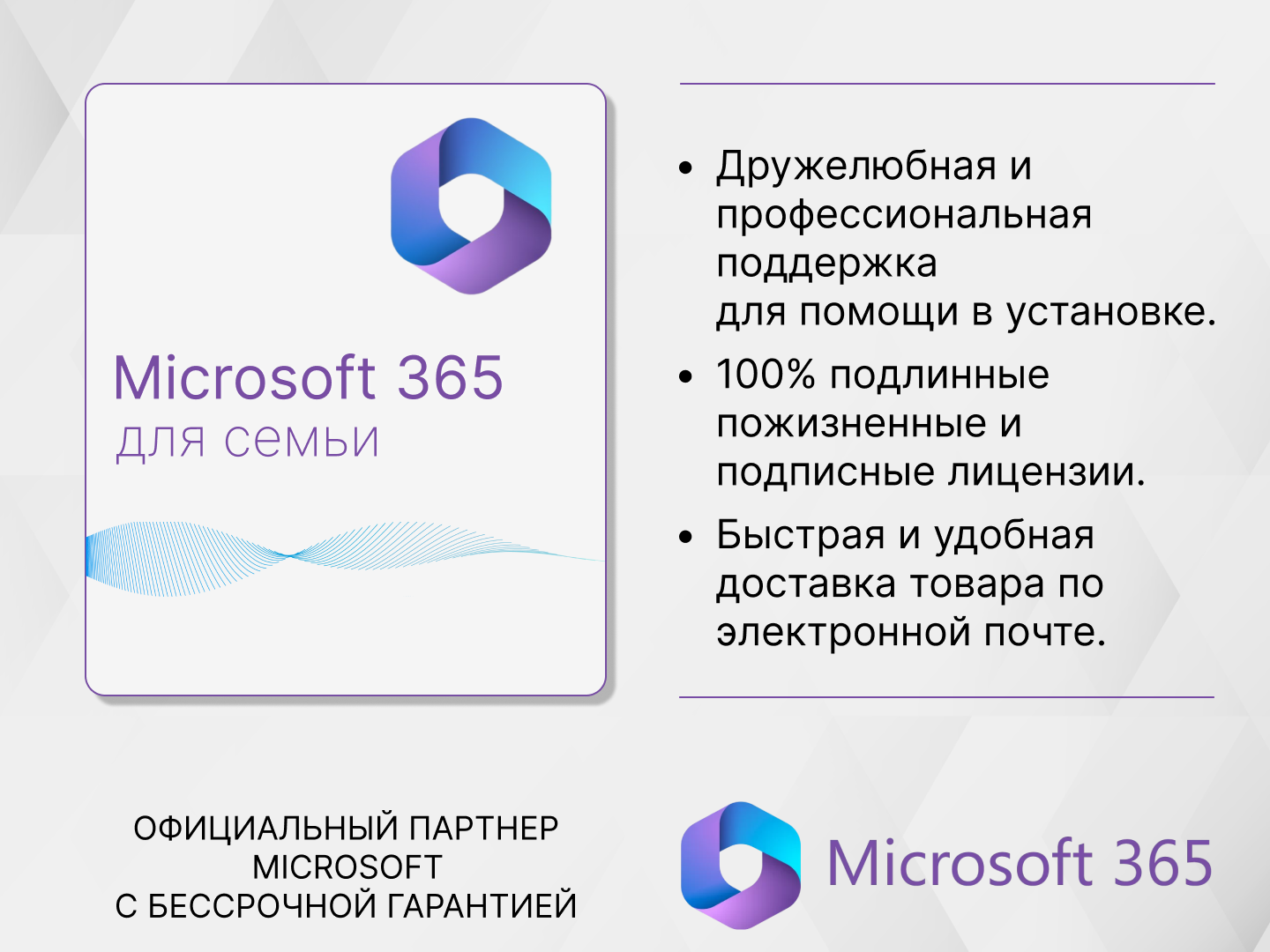 Microsoft 365 семья / 15 месяцев / Office 365, Привязка к Вашей учетной записи через другой регион) Русский язык. интересное: