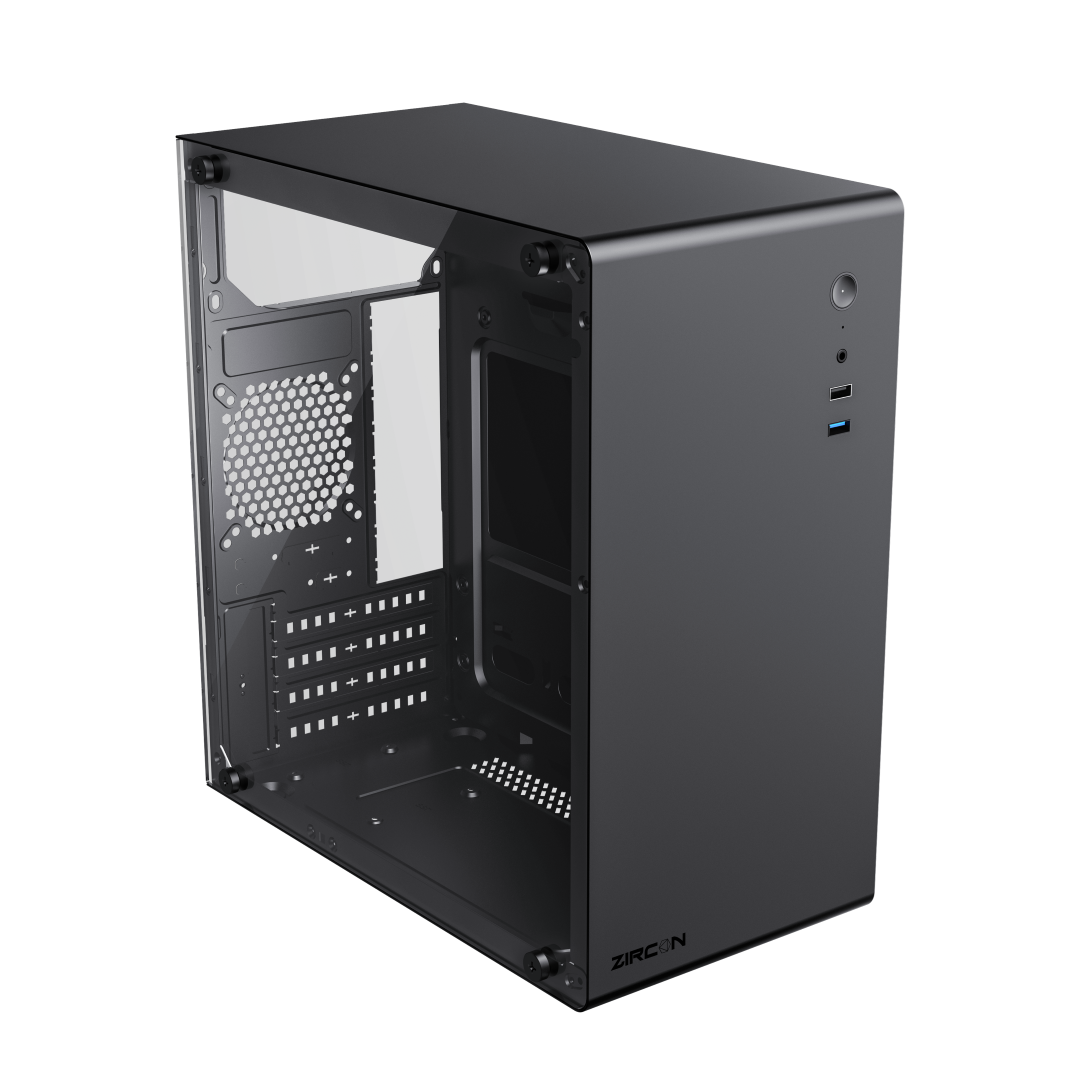 Корпус Zircon Mozart BK без БП (Черный Midi-Tower Micro-ATX Mini-ITX CPU 140мм VGA 300мм Закаленное стекло 1*USB3.0, 1*USB2.0, 1*92мм)