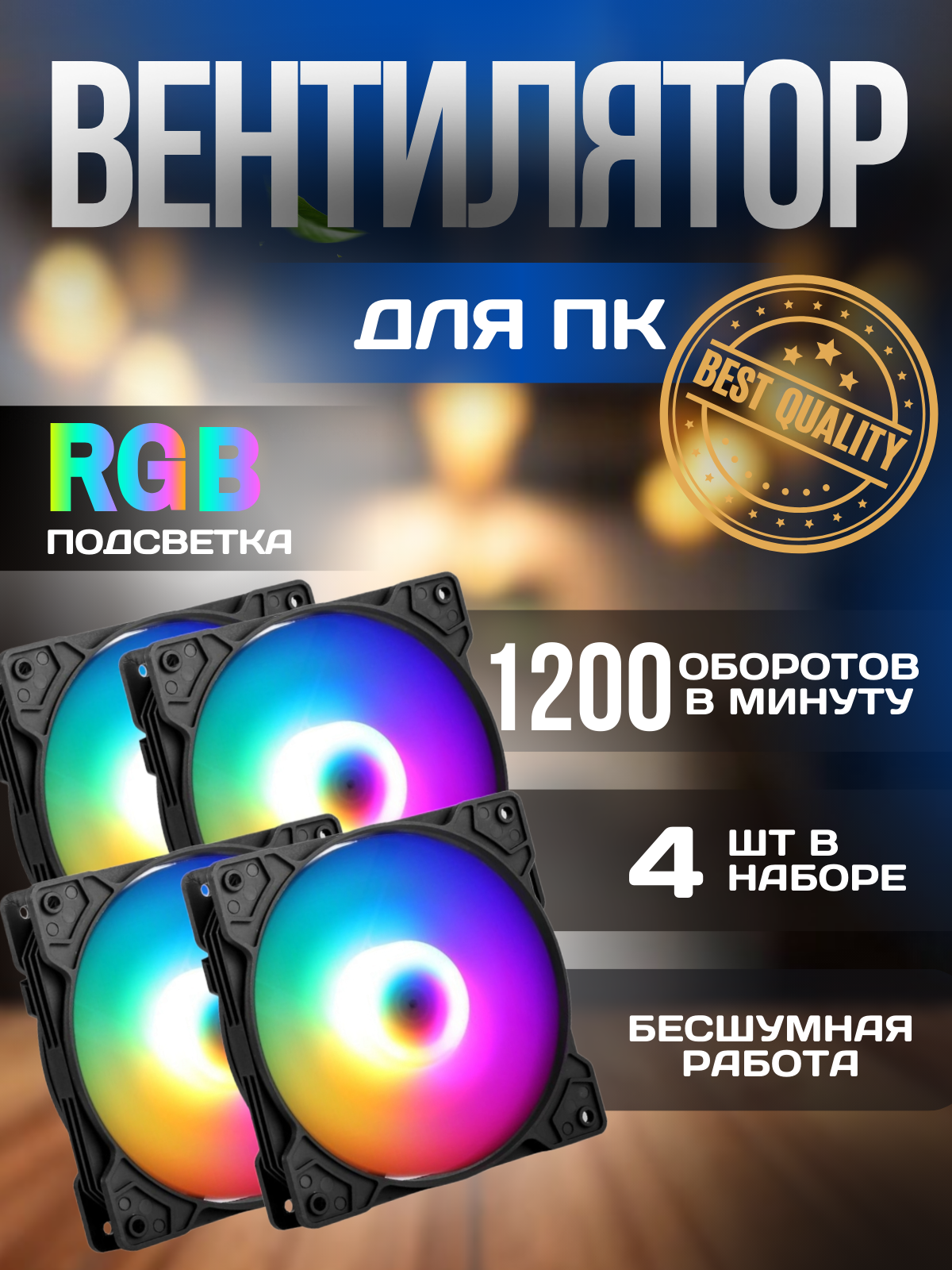 Вентиляторы для корпуса 120мм подсветкой , набор 4 кулера + крепеж